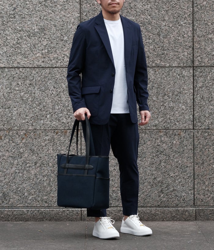 シルエットは都会的に整えたレギュラーフィット。9つのポケットには用途を示すタグを付け、必要に応じて取り外し可能。収納力を確保しながら、細部のディテールで大人の余裕を演出。