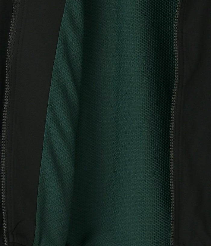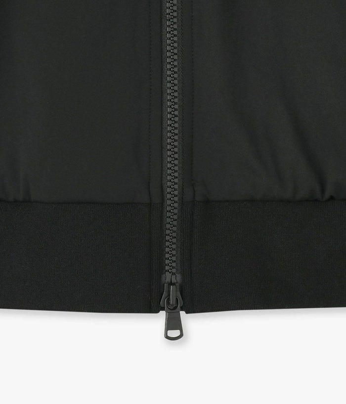 スタンドカラーとラグランスリーブが動きやすさをサポートし、袖口と裾口にはリブニットを使用してフィット感をアップ。立体的なシルエットが一般的なストレートシルエットとは異なるモダンな印象を与えます。フロントは全開可能なジッパー付きで、着脱がスムーズです。