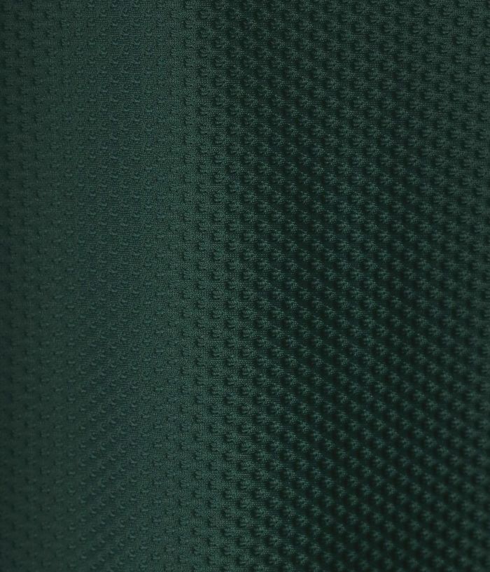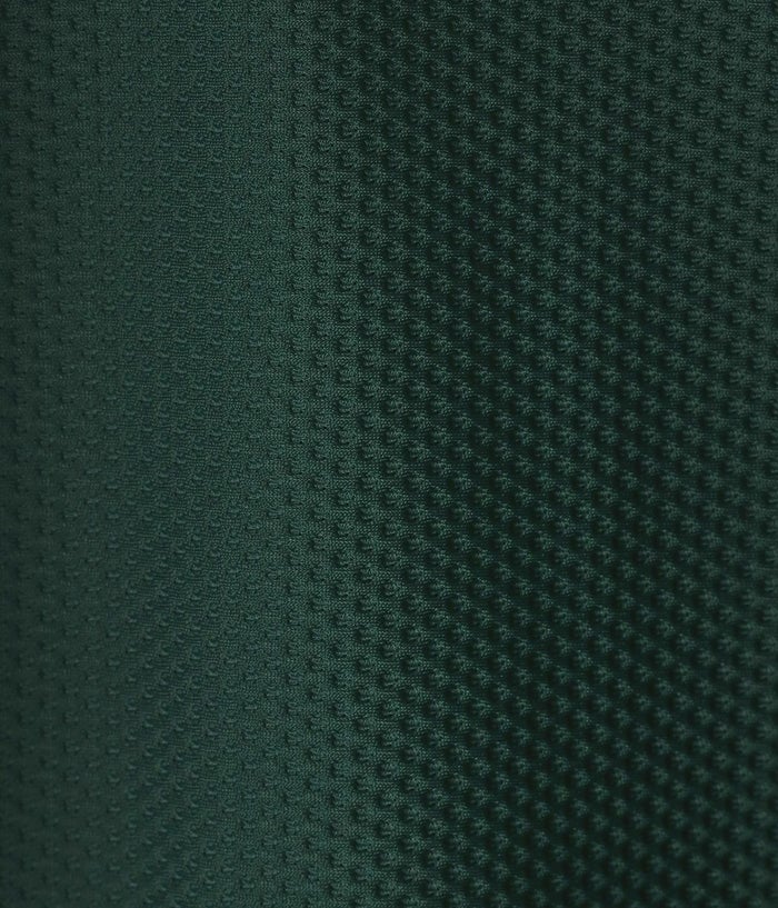 ハイゲージで編み上げたダブルジャージ素材を採用。裏面には細かいメッシュ構造を施し、凹凸感による快適な肌触りを実現。吸水速乾、防シワ、2WAYストレッチ、ウォッシャブル機能を備えた高性能素材で、スポーツから日常まで幅広く活躍します。