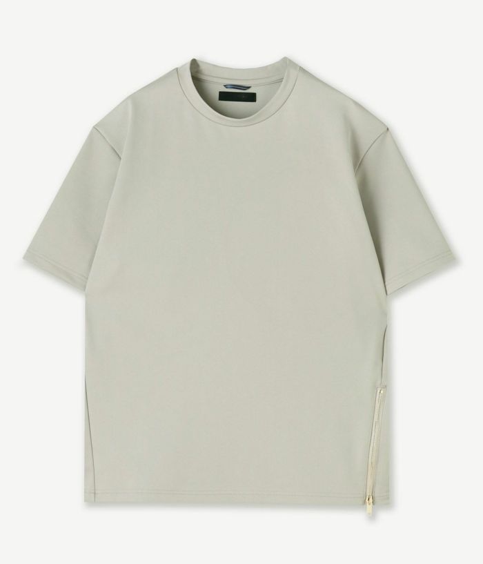 肩幅を広めに取った設計で、自然に肩が落ちるリラックス感のあるシルエットに。小顔効果も期待できるデザインです。ネックラインは柔らかな丸みを持たせたクルーネックで、首元に優しくフィット。左裾には、イタリアのRACCAGNI社製ジップをアクセントとして配置し、シンプルな中に個性が光る仕上がりに。
