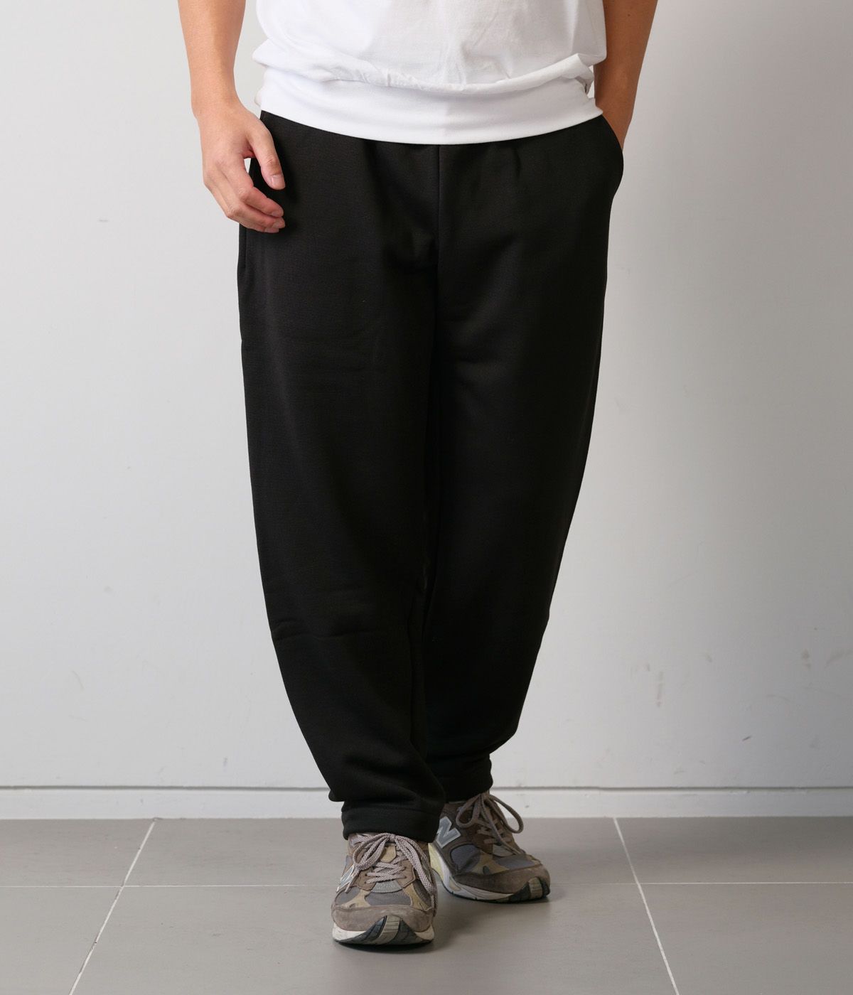 ゆったりとしていますが、スッキリと見えるテーパードシルエットのサイドシームレス仕様のイージーパンツになります。