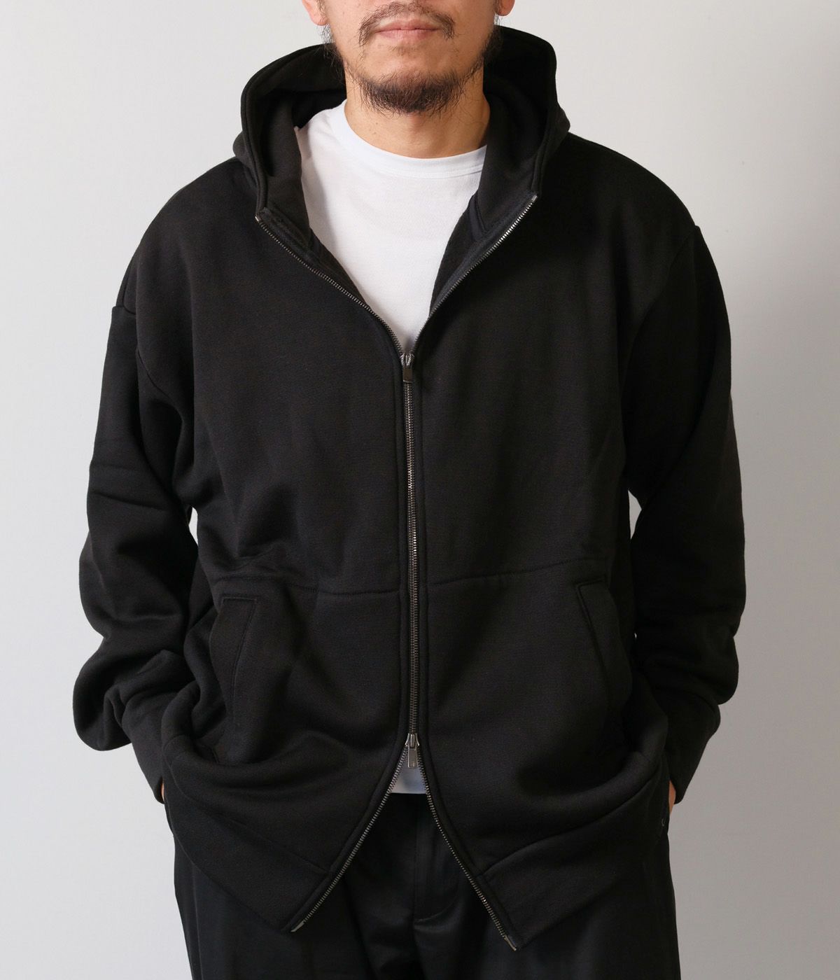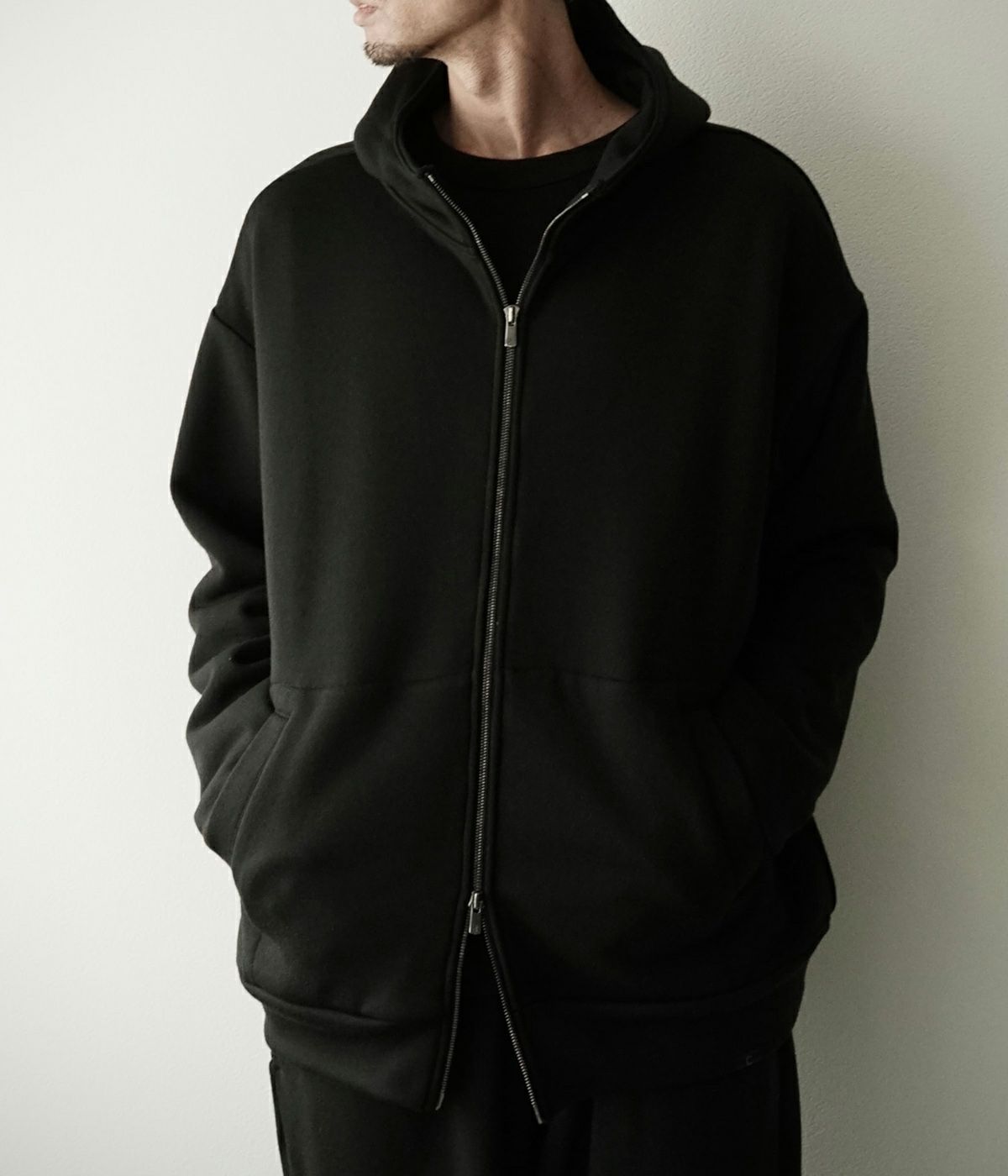 Washable加工を施した上質な梳毛Woolで編まれた裏毛素材のパイルに起毛加工を施して、ボリュームの割にはソフトで軽くてふっくらとした、嵩高性のある特別なWool Sweat用の生地を作りました。