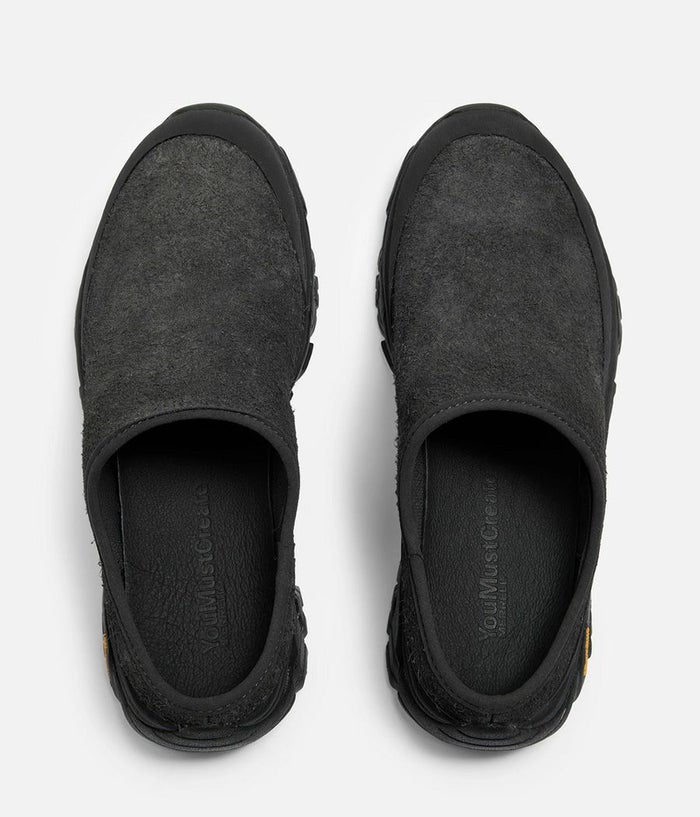 毛足が長いへアリースエードレザーのアッパーをベースに、耐久性を高めるためラバーをアッパー周囲に配置。