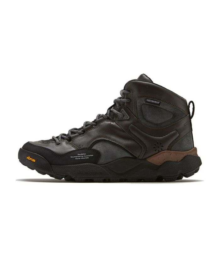 ブラウンとチャコールをMIXさせたような深い味わいが特徴のIRON BROWN。AWシーズンだけでなく、履きたい1足に仕上がっている。 アウトドアシーン対応する機能性にこだわったトレッキングモデル “BACK COUNTRY”のハイカット。「DMA」のプロデュースにより足首周りを保護するアンクル丈に改修。機能性はローカットモデルをそのまま継承。完全防水・ハラコートシューレースを採用。ツーリングには悪路でも確実に路面をグリップするビブラム社の『 MEGA GRIP 』を使用したFlower MOUNTAINオリジナルソールを搭載。