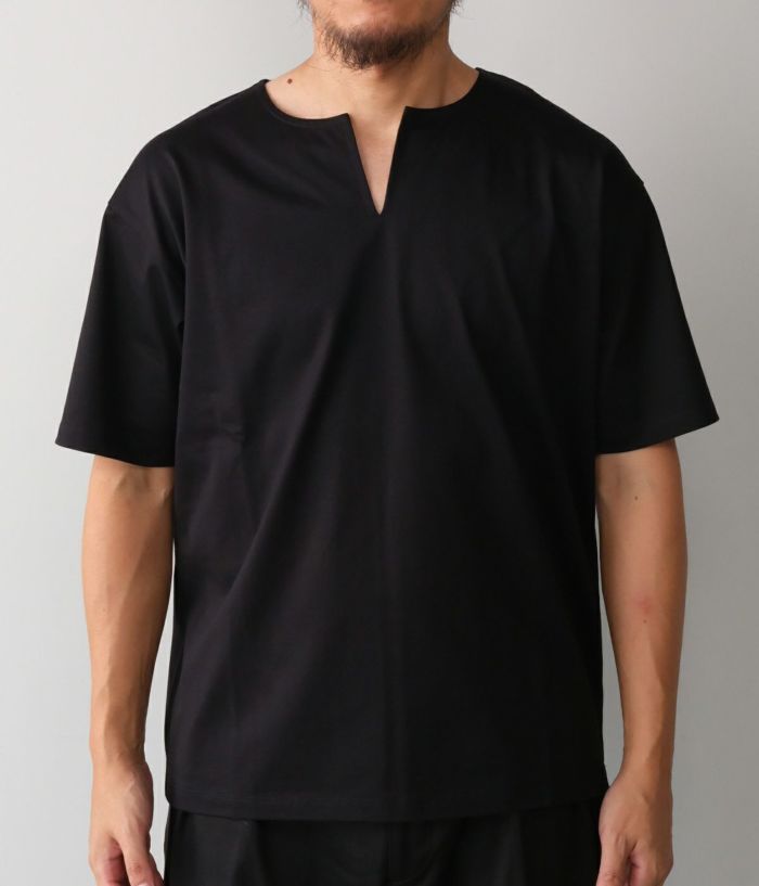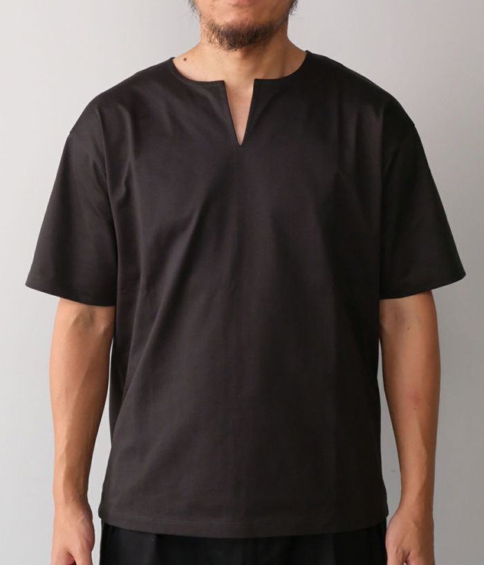 ・涼しげなスリットネックのTシャツ