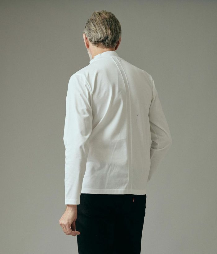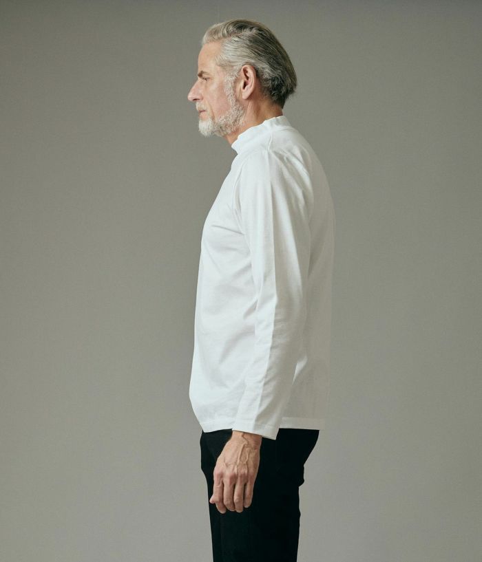襟元にはフライス生地を使用し、首にやさしくフィット。程よく高さのあるモックネックデザインで、窮屈さを感じずスマートな印象に。インナーとしても一枚着としても活躍する、汎用性の高いロングスリーブカットソーです。 上質な素材感と耐久性を両立した「101SERIBU MOCK NECK」。日常からアクティブシーンまで、長く愛用できる定番アイテムです。