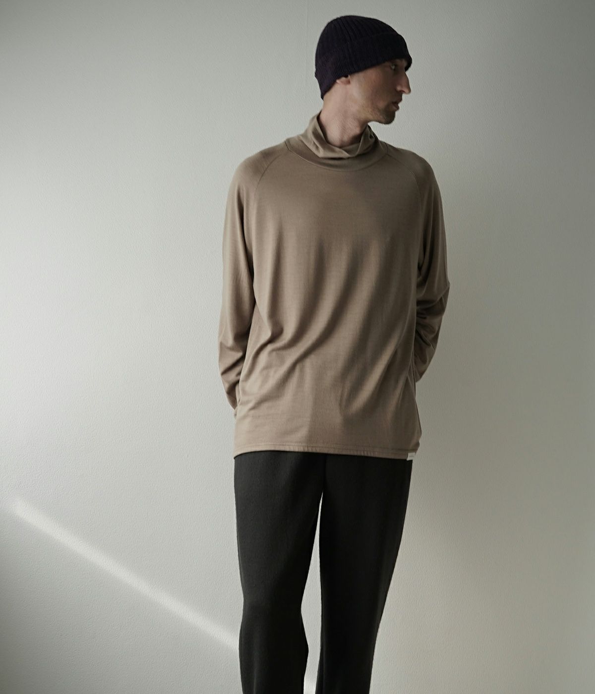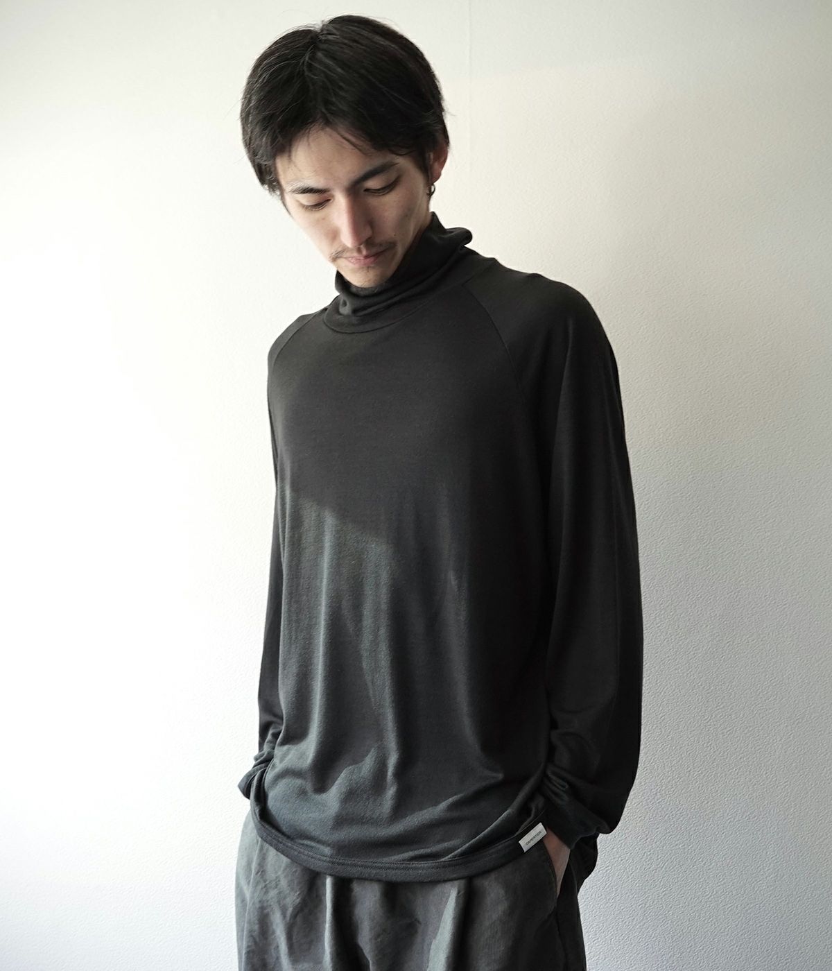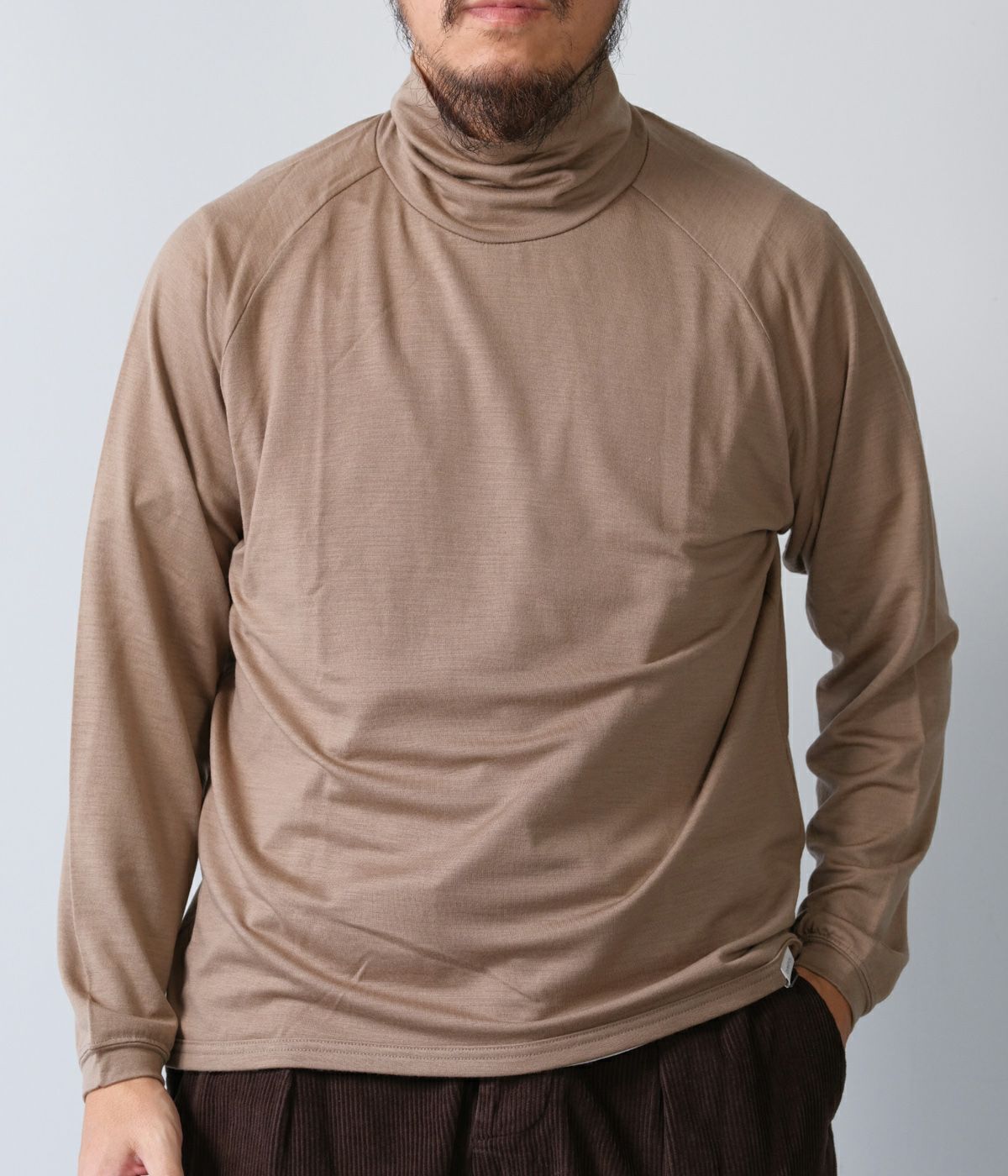 ネック寸法を少し緩めにデザインしたタートルネックTeeです。