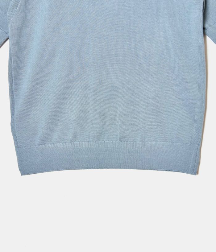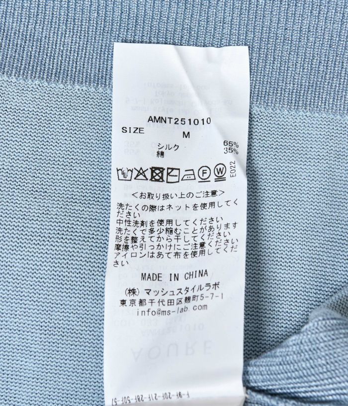 プレーティング編みという表裏の表情を変えることのできる編み方を用い、表側にはシルク、裏側には綿という構成で編み立てることで、シルクの高級感と綿の着心地をあわせもった仕上がりとなっています。