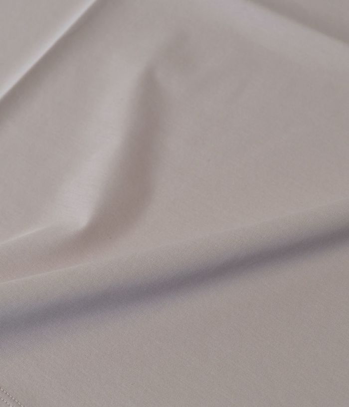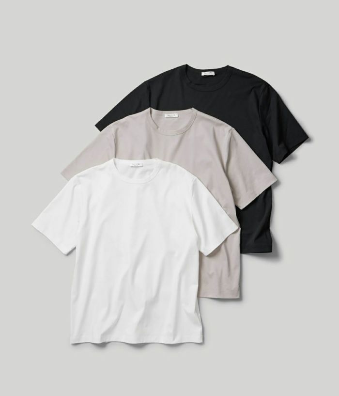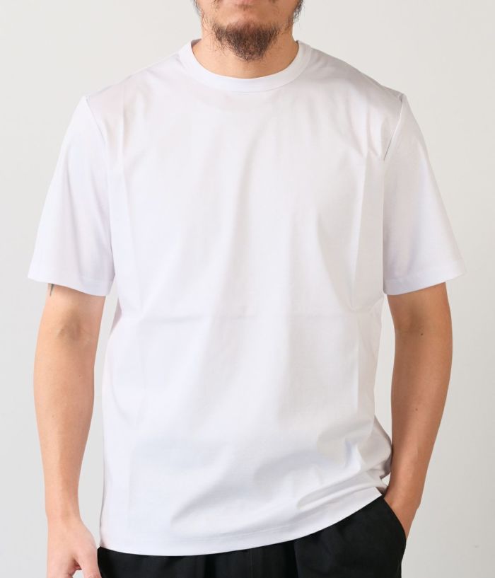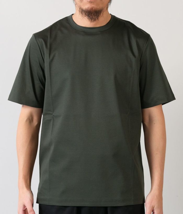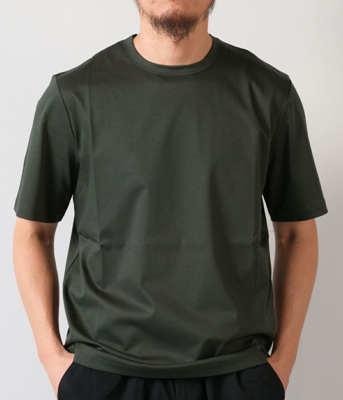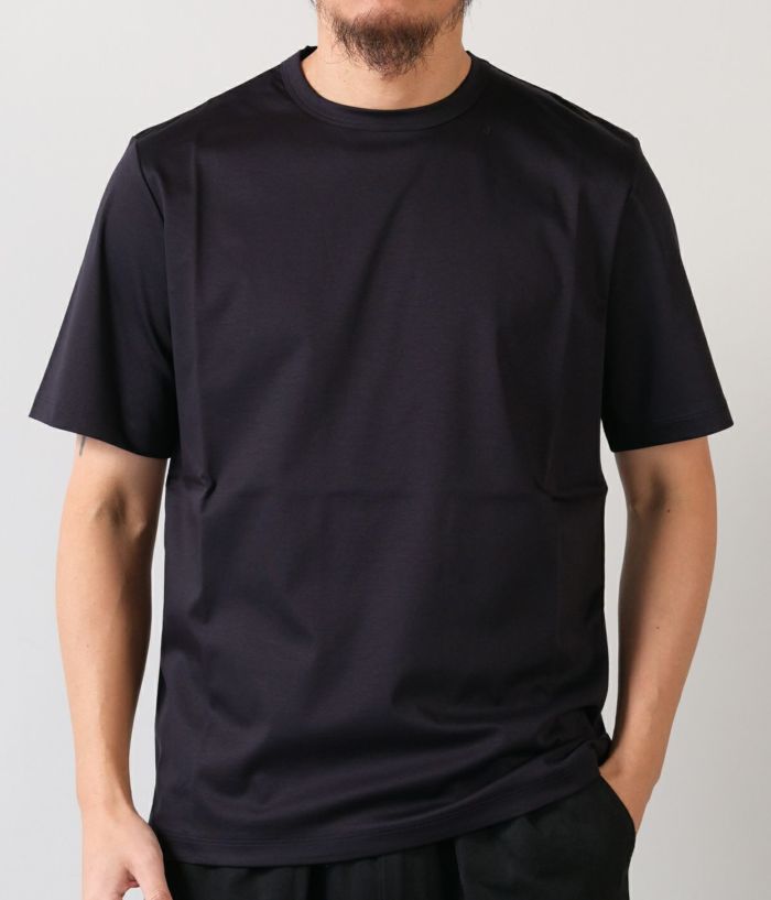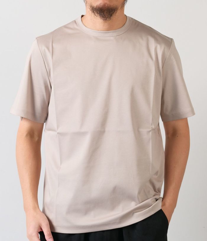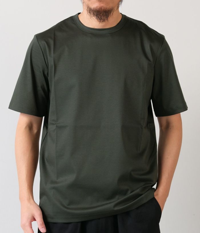 コットン100%とは思えない極上のシルキータッチがサラリと軽く、ドレッシーな素材。艶やかな深みのある色合いが特徴。ジャケットのTシャツスタイルでもサマになり、鮮やかな高級感を演出します。