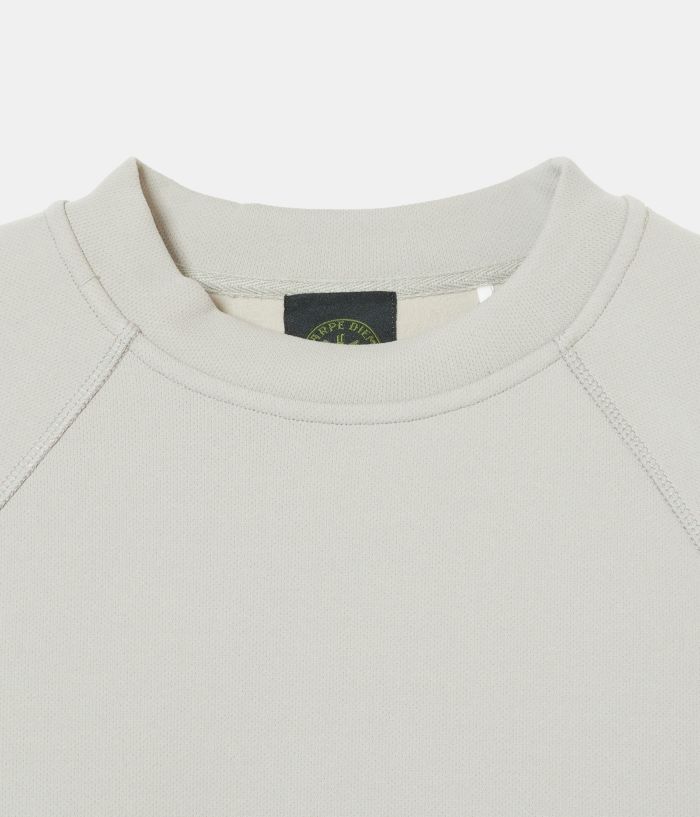 素材感のあるポリエステルの裏面を起毛させることでハリを持たせた素材を使い、極力シンプルなデザインの中にカッティングパターンでポケットを配置する事でデザインと実用性を兼ねたクルースエット型。