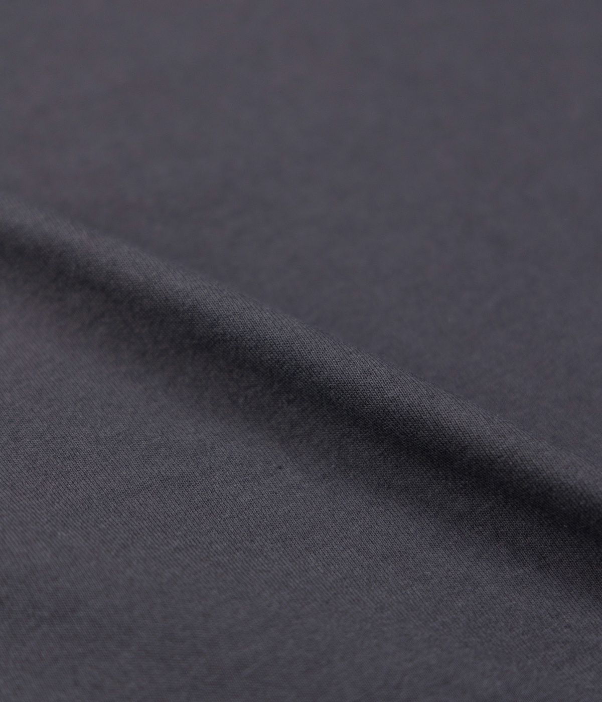225g/㎡(6.6オンス)という肉厚なヘヴィウェイト生地を採用したこのTシャツは、布地の厚みや着心地をとことん追求して作り上げた“プレミアム”な一枚です。一般的なTシャツよりも重厚感があり、しっかりとした質感が体を包み込むので、洗い込んでも型崩れしにくく、長く愛用できます。ベースにほどよい光沢感のある綿素材を使うことで、着るほどに生地が肌になじみ、経年変化も楽しめます。