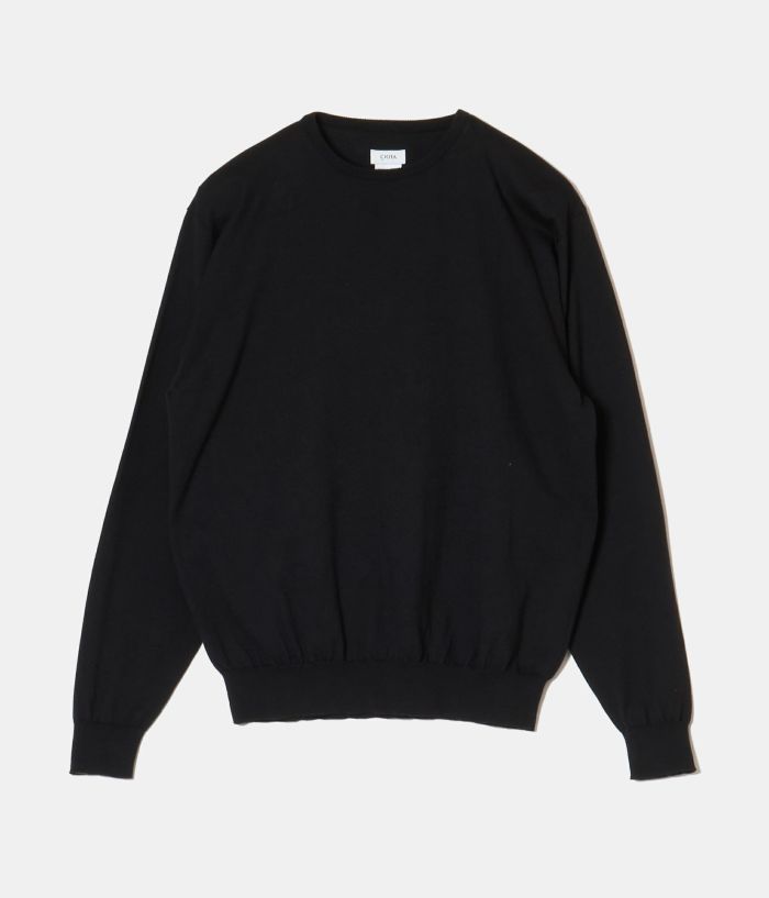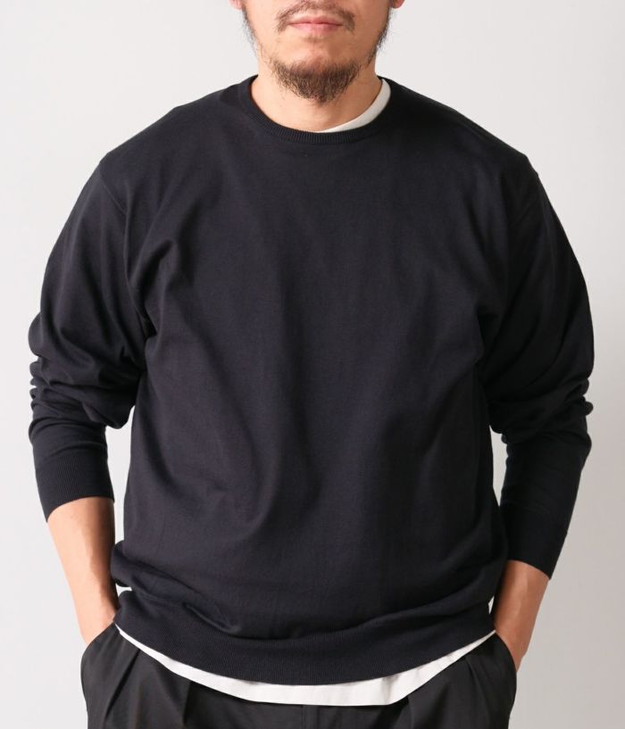 CIOTAの新アイテムニットになります。 BATONER(バトナー)を手掛ける奥山メリヤス様に糸から型まで全ての作成を依頼。 老舗イギリスブランドのイギリス製アイテムからサンプリング。 CIOTAが考える現代風のシルエットになる様に調整をしております。 生地は18Gの天竺がスビンコットンでより滑らかさしなやかさが際立ちます。