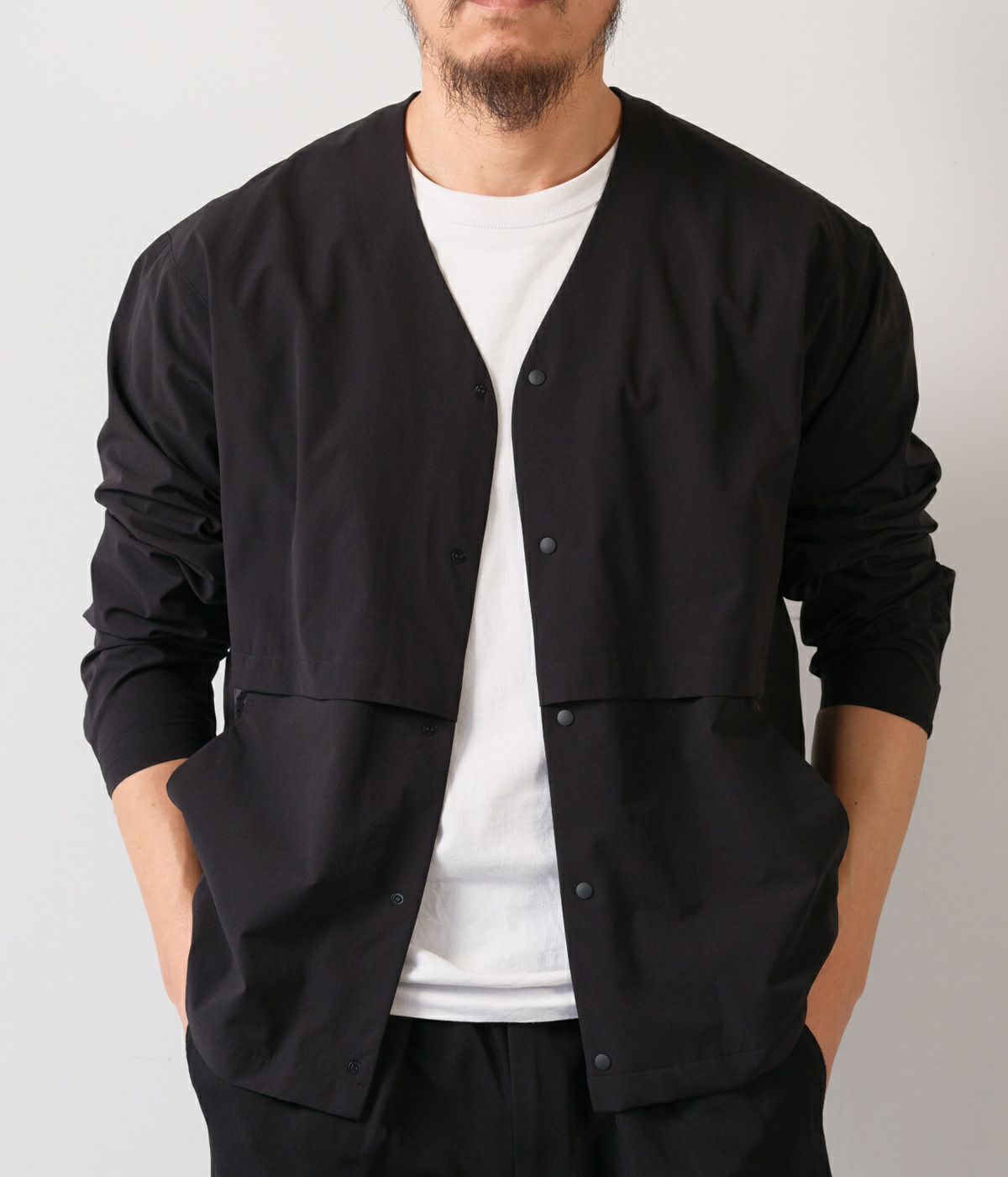 超軽量の全方向に伸縮するマルチストレッチ、シワになりにくく、撥水性も備えた機能素材を使用。レングスをレギュラー設定し、腰回りにもゆとりを持たせたバランスにした事で、各ボトムスとの相性も良い。ベンチレーション機能を完備している為、長い期間の着用が可能。