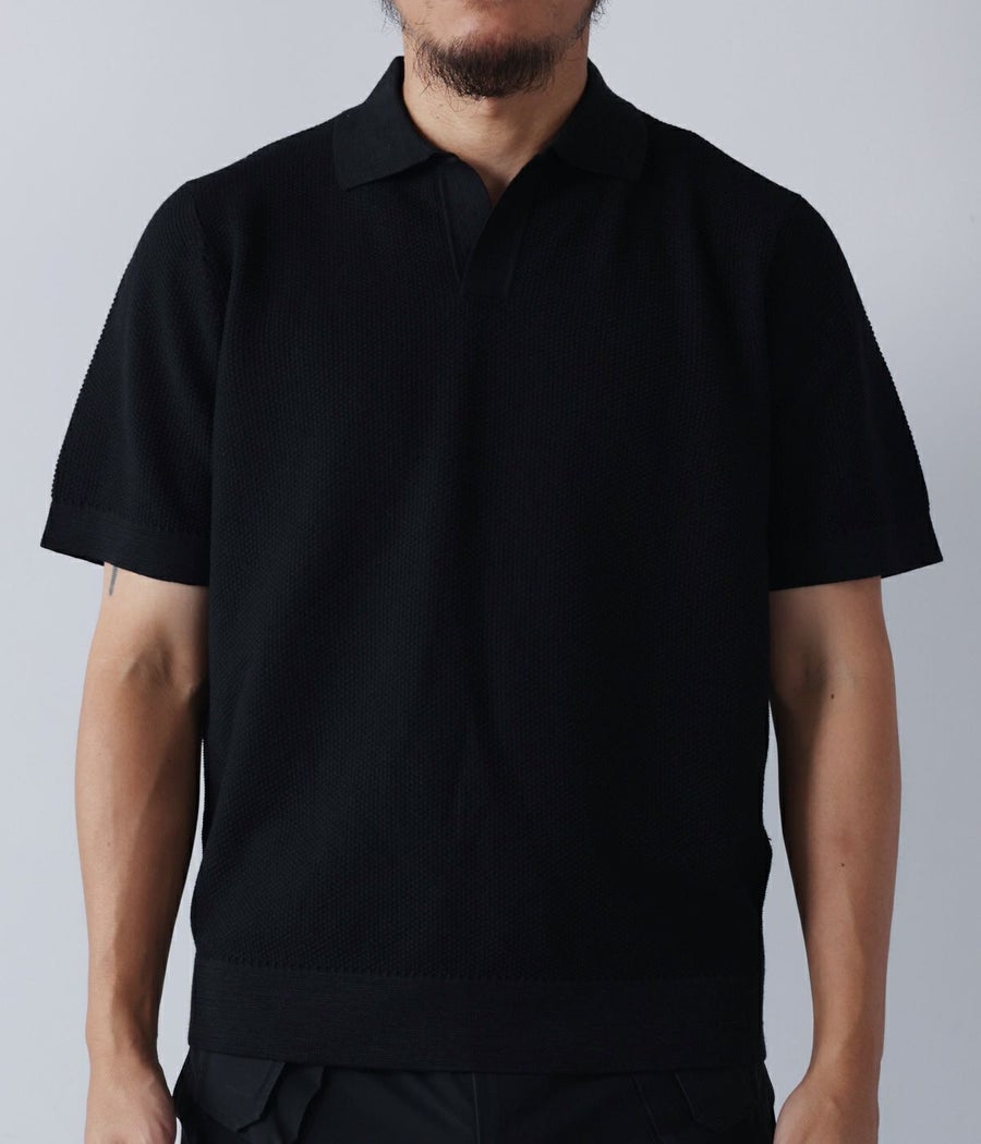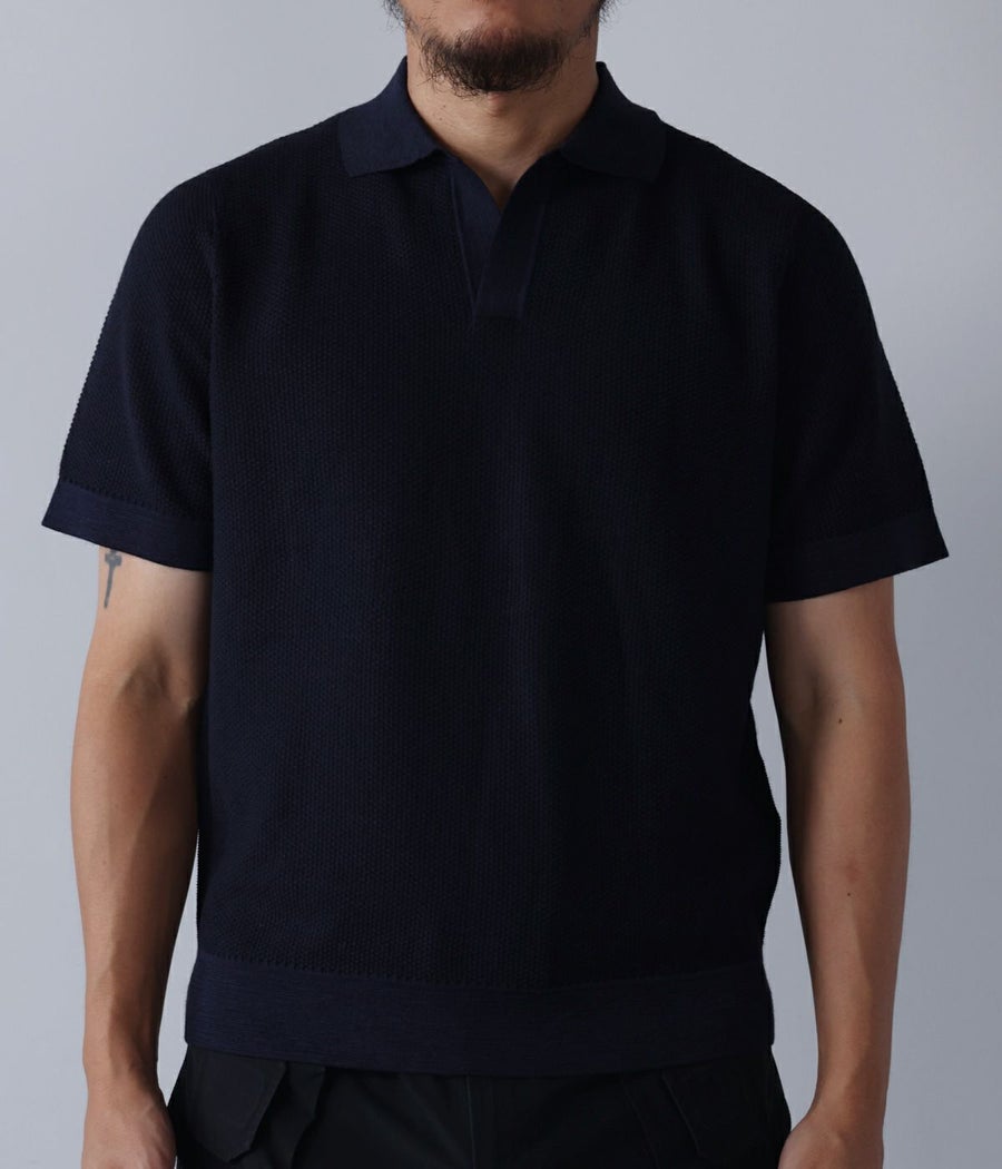 ハイブリッドリネンニットポロシャツ