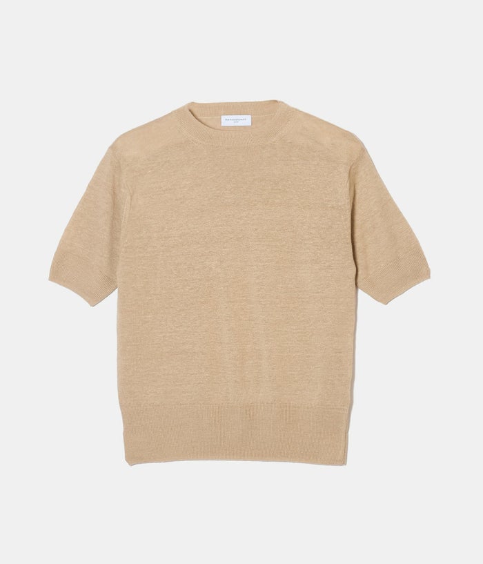 程よい麻の質感と編み目が清涼感を感じるリネン100%のニットTシャツです。さらっとした麻の魅力は、これから迎える季節にはぴったりの素材。Tシャツのように着られ、程よいゆとりがどんなボトムとも相性が良い1着です。