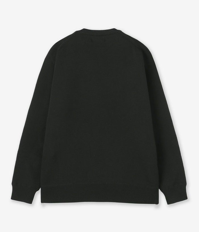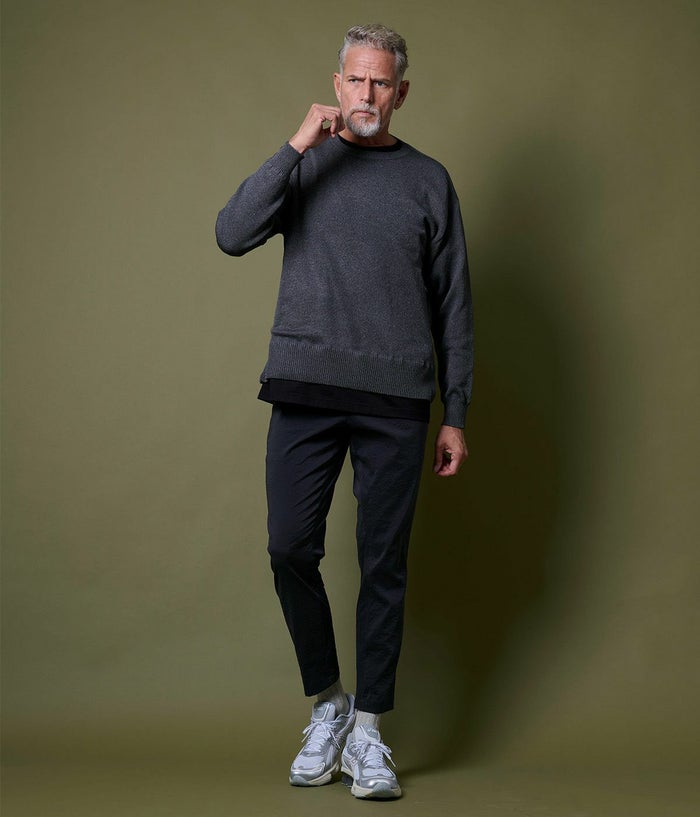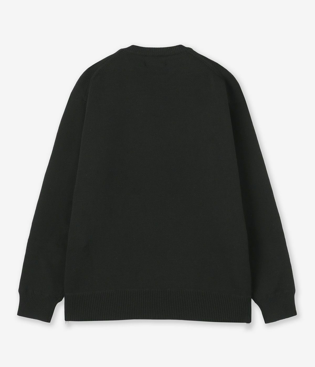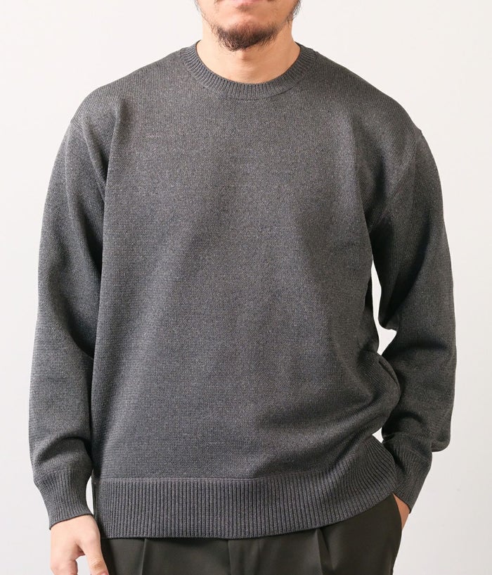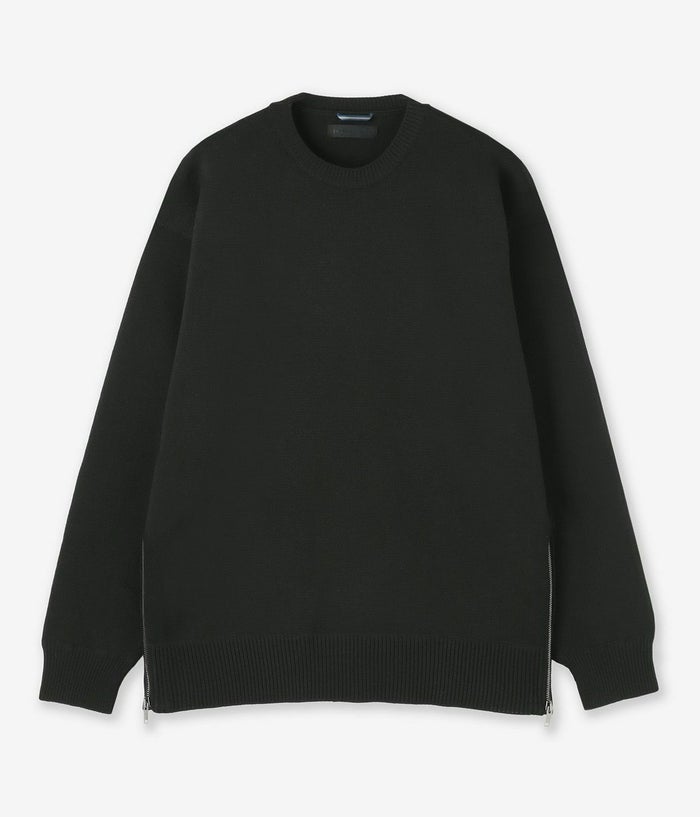 クルーネックの端正さに、ジップスリットというスパイスを加えたロングスリーブニット。