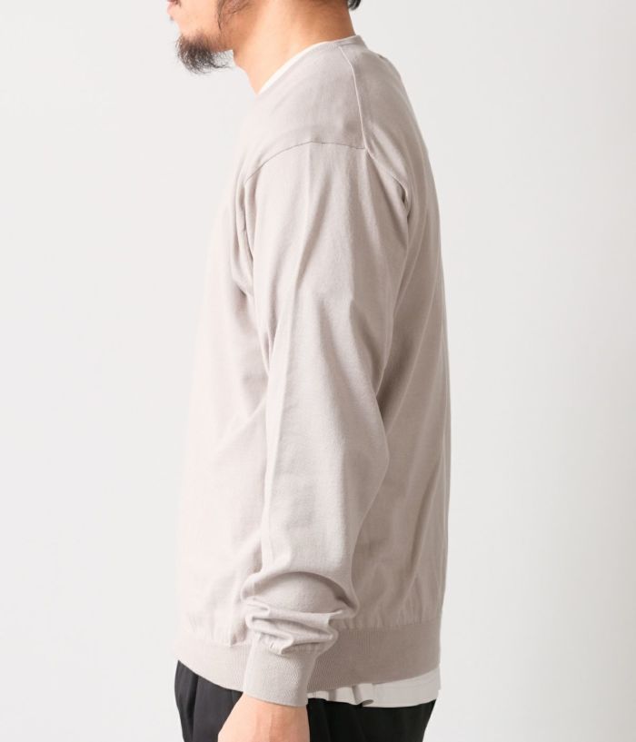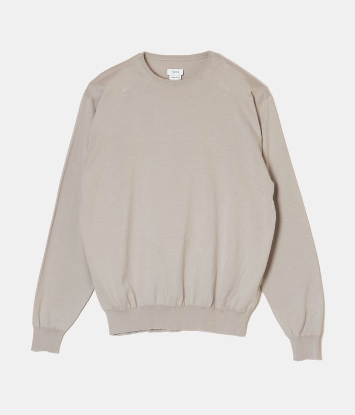 CIOTAの新アイテムニットになります。 BATONER(バトナー)を手掛ける奥山メリヤス様に糸から型まで全ての作成を依頼。 老舗イギリスブランドのイギリス製アイテムからサンプリング。 CIOTAが考える現代風のシルエットになる様に調整をしております。 生地は18Gの天竺がスビンコットンでより滑らかさしなやかさが際立ちます。