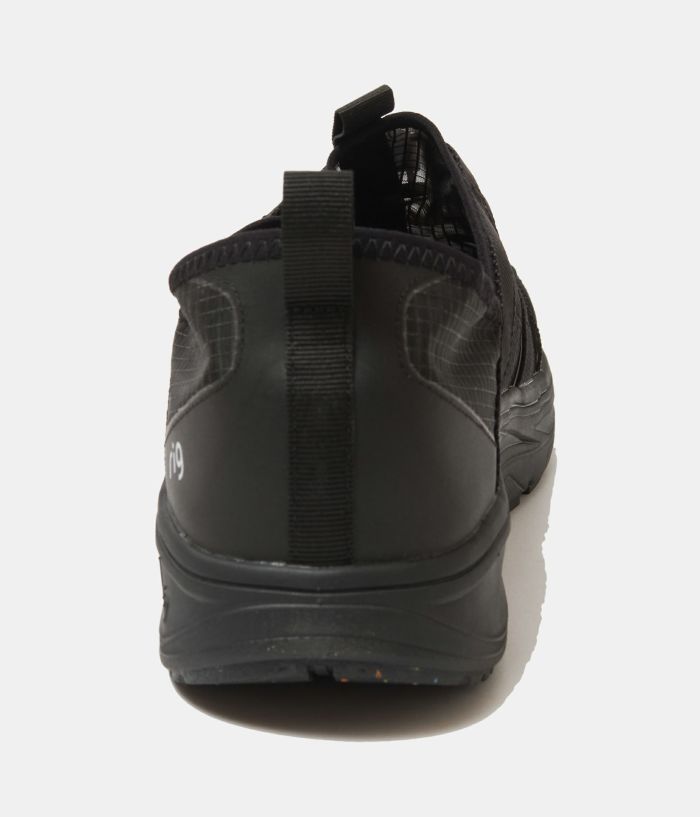 rigのリカバリーシューズは衝撃吸収性が非常に高く足腰のストレスを開放して疲労の回復を促します。特に立ち仕事や運動後などは翌日に疲れを残さないよう足を最大限にリラックスさせます。また、硬質サンダルに比べて足腰への負担が軽減されるため腰痛持ちやヘルニアの方の普段履きにも適しています。 moja 2.0(モージャ)はアッパー素材にDYNEEMA MESH RIPSTOPを使用することで、耐久性を向上させました。通気性抜群なスリッポンタイプ。ゴムベルトを縛り甲幅を調整でき、ヒール部分を踏みスライドサンダルとしても使用可能です。