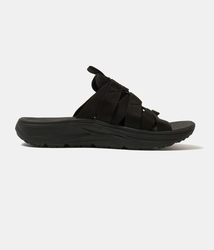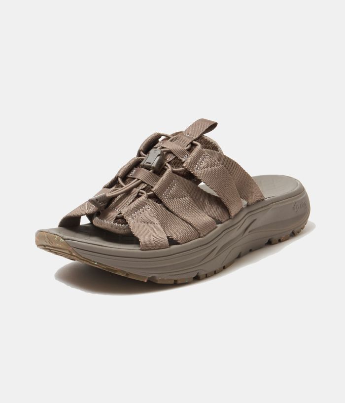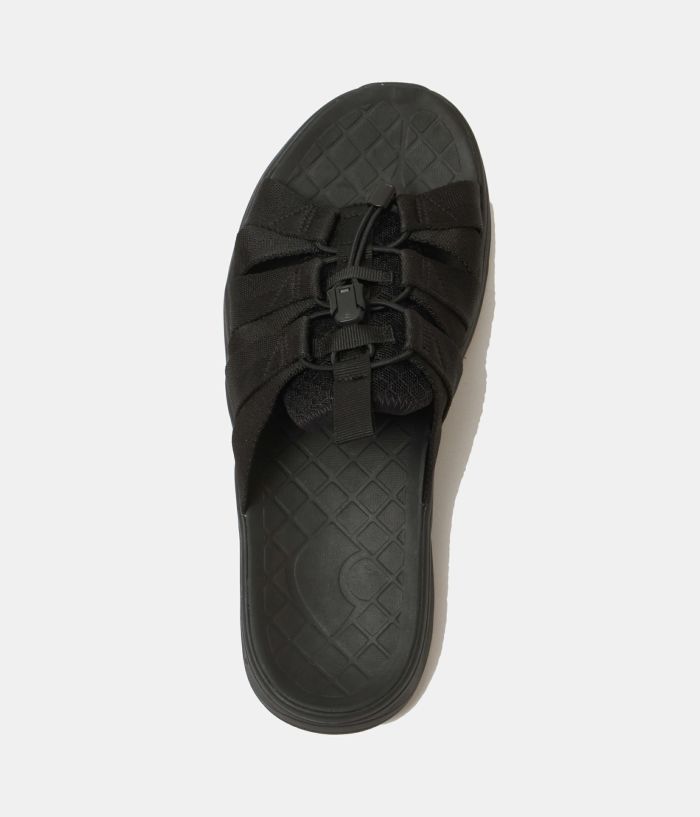 rigのリカバリーサンダルは衝撃吸収性が非常に高く足腰のストレスを開放して疲労の回復を促します。特に立ち仕事や運動後などは翌日に疲れを残さないよう足を最大限にリラックスさせます。また、硬質サンダルに比べて足腰への負担が軽減されるため腰痛持ちやヘルニアの方の普段履きにも適しています。 スライドタイプの Wadu( ワドゥ) は甲部分を 6 本のナイロンテープをゴム紐で結んでいるので、アクティブな動きやどのような足形でもフィットします。