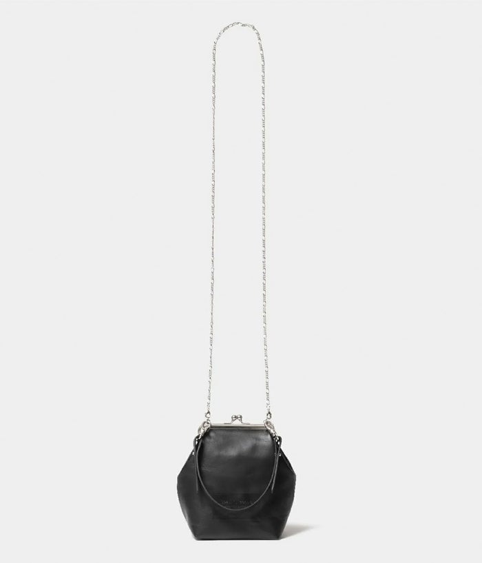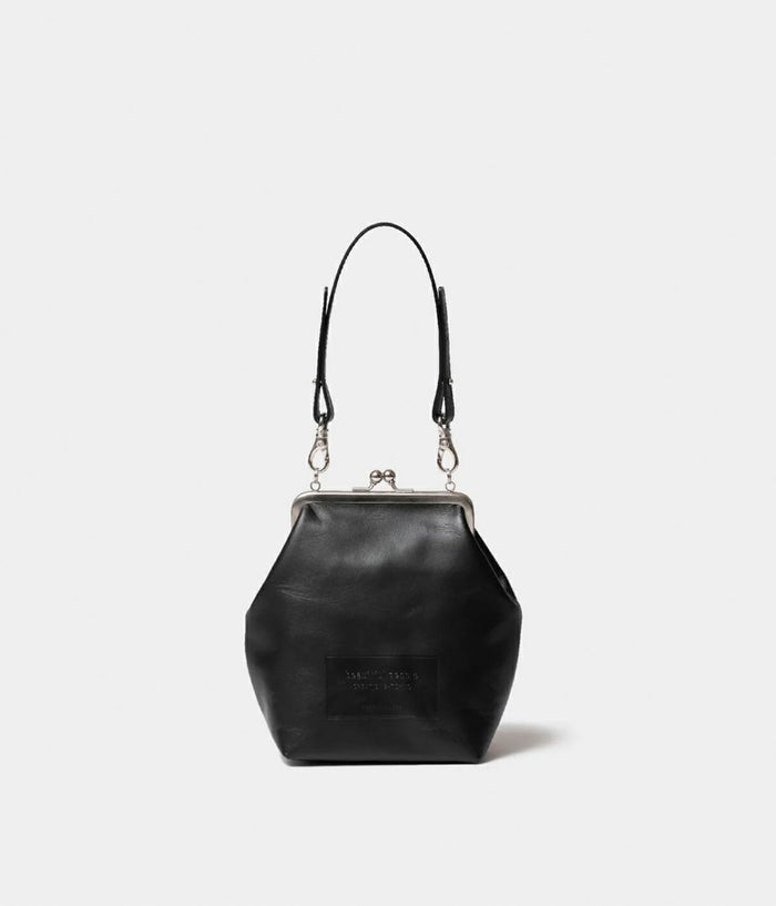 ・定番のクラスプポーチをリニューアル ・マチを広く取り、底の方が広い形状で小さいバッグとして十分使えるサイズに ・肩掛けしない時はハンドバッグとしても持てる取り外し式のレザーハンドル付き ・内装にはカードが入るポケット付き ・スマートフォンが入る大きさ ・裏地付き ・ネームタグが本体に埋め込まれたようなロゴ刻印入り
