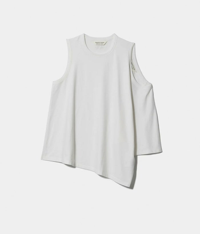 ・衿ぐりを通す位置を選べる2wayトップ ・ストレートシルエット ・頭を通す位置によってヘムラインが変化するデザイン ・タンクトップと半袖の2つの変化が楽しめる ・後ろ衿下に同色のブランドロゴとB.PPLロゴの裏見せ刺しゅう入り ・立体感のあるロゴ刺しゅうが特徴 ・裏側から刺しゅうを施すことで、通常フラットな表面が肌側になり肌当たりの良さがポイント ・腰丈