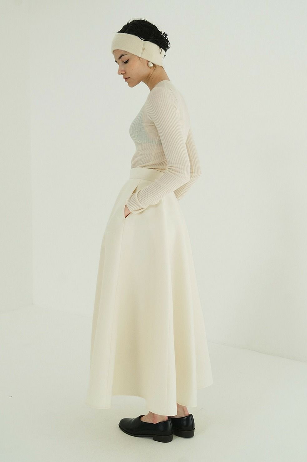 細い番手の糸を16ゲージで丁寧に編み立てた、繊細なシアーリブニット。