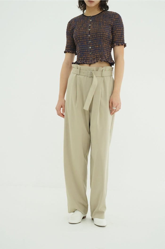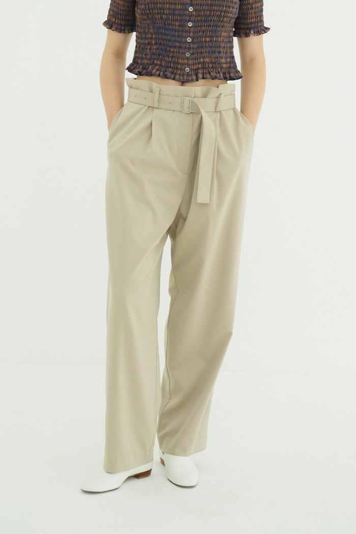 ウエストは大きめに設計しており、ベルトで絞って着用することで、お好みの位置やボリューム感に調整できます。