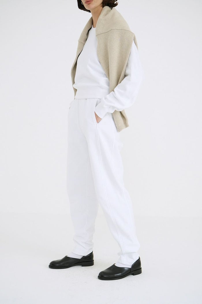 ヴィンテージ感のある表面とドライタッチで程よくハリのある、国内生産の裏毛素材を使用したスウェットパンツ。