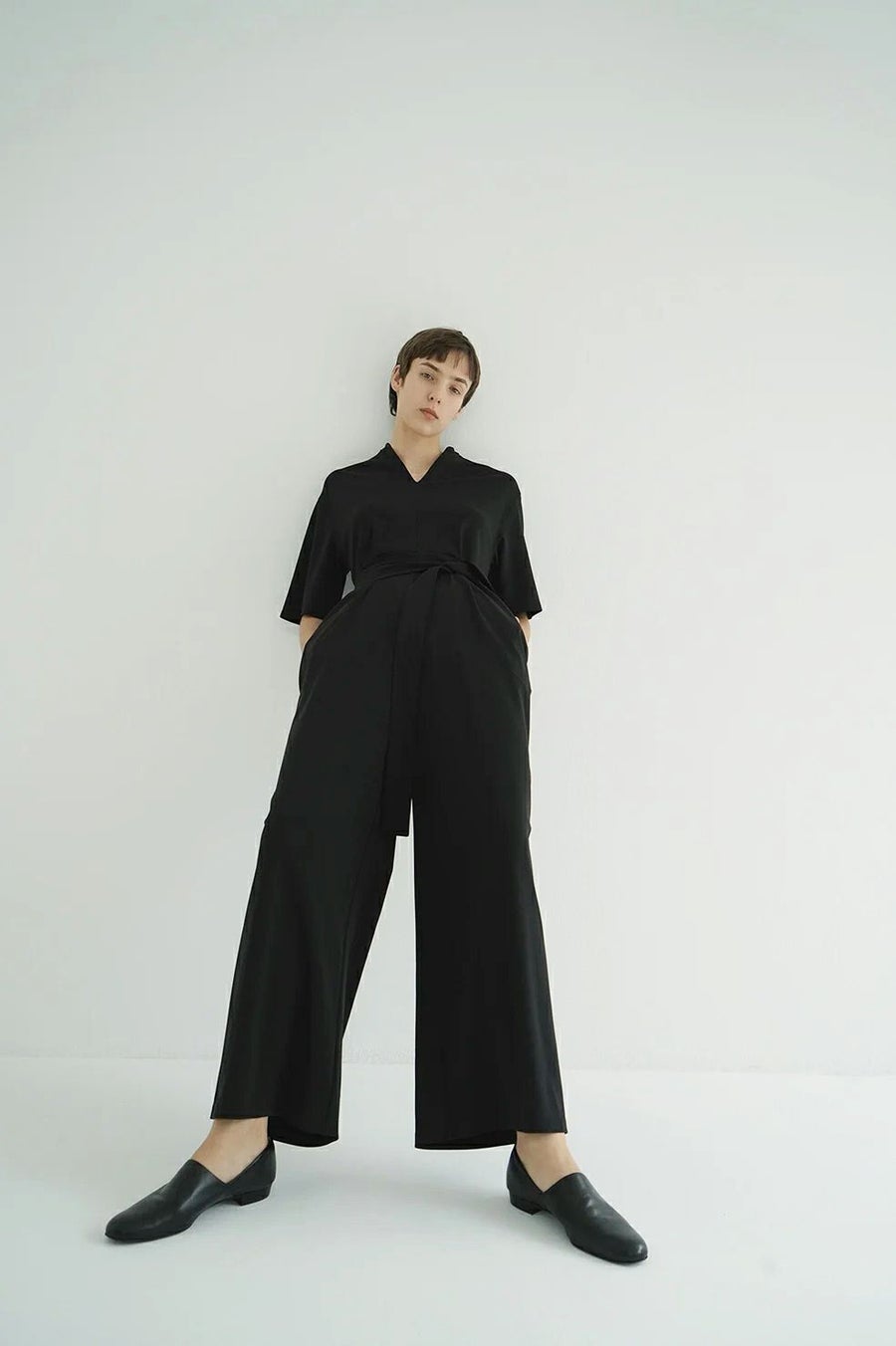 WIDE BELT TUCK PANTS