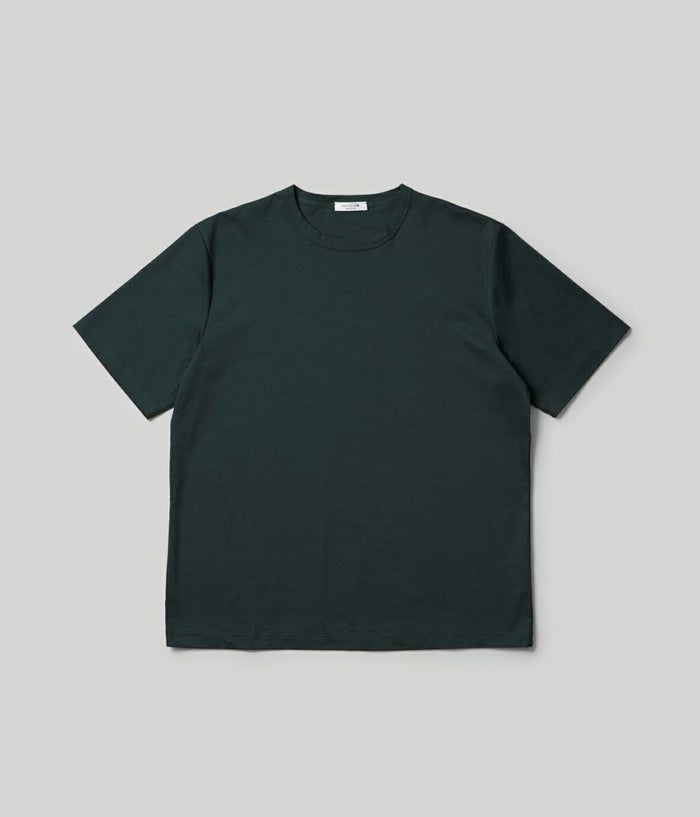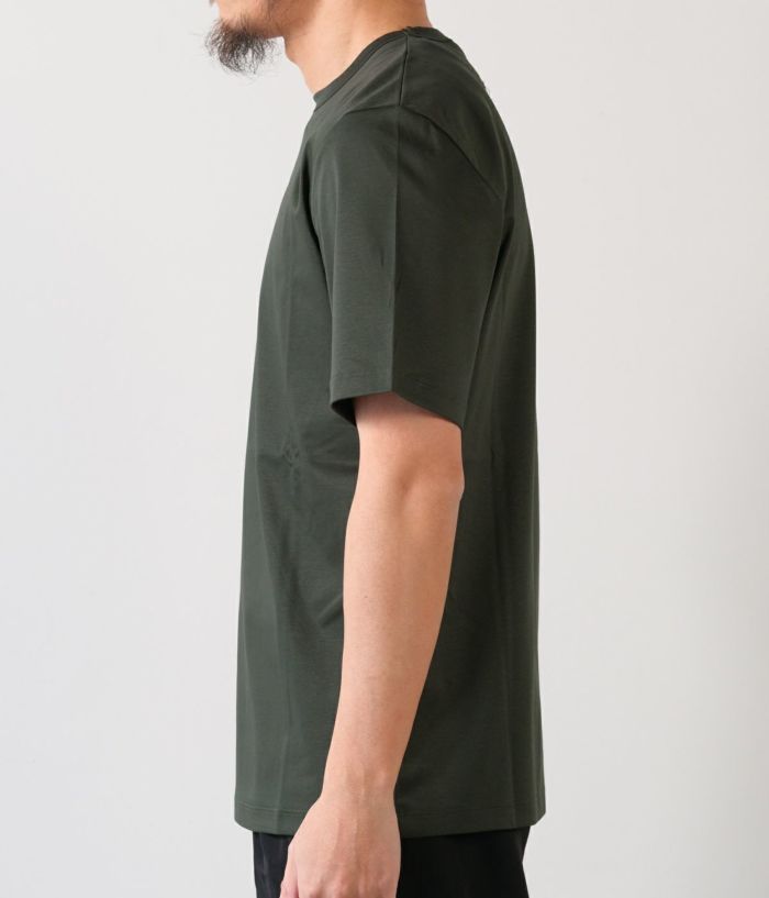 コットン100%とは思えない極上のシルキータッチがサラリと軽く、ドレッシーな素材。艶やかな深みのある色合いが特徴。ジャケットのTシャツスタイルでもサマになり、鮮やかな高級感を演出します。