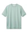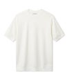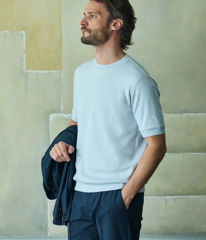 包み込まれるような柔らかさをもった半袖Tシャツ。裾と袖口をリブデザインにして、リラックスさの中にもスッキリとした印象で着れるように工夫しています。適度にリラックスさを感じるサイジングに設計。細めから少し緩めのボトムまで合わせることができる嬉しい一枚となっています。縫製も直接肌にあたる内側の縫代を極力なくす特殊なテクニックを入れ、こだわり抜いたTシャツになっています。普通のTシャツとは一線を画す上品な顔をもったデイリーに着れる一枚となります。