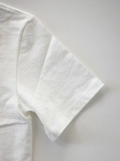 耐久性とドライな質感が特徴の吊り編み度詰め天竺。詰まった首元とすとんとした丸胴でゆったりとしたカジュアルなシルエットの丸首Tシャツです。