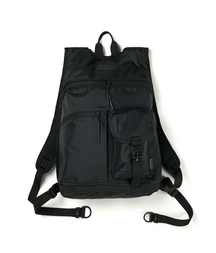 ・軽量かつ、フィット感に優れたBACKPACKです。 ・本体とショルダーストラップが一体型になっており、体にフィットするように作られております。 ・背中部分には3Dメッシュを使用して、通気性を確保しております。 ・フロントには二種類のポケットが搭載されております。 ・13インチまでのノート型PCやタブレットを収納できる専用コンパートメントを備えております。 ・フロントポケットのフラップ部分にはマグネットバックルを使用しており、取り外ししやすくなっております。 ・表生地、裏生地は撥水加工されて210D NYLONを使用しております。生地の裏面には AIR TIGHTNESS 加工を施しております。気密性能を上げる為にシリコン樹脂を裏面にコーティングしております。