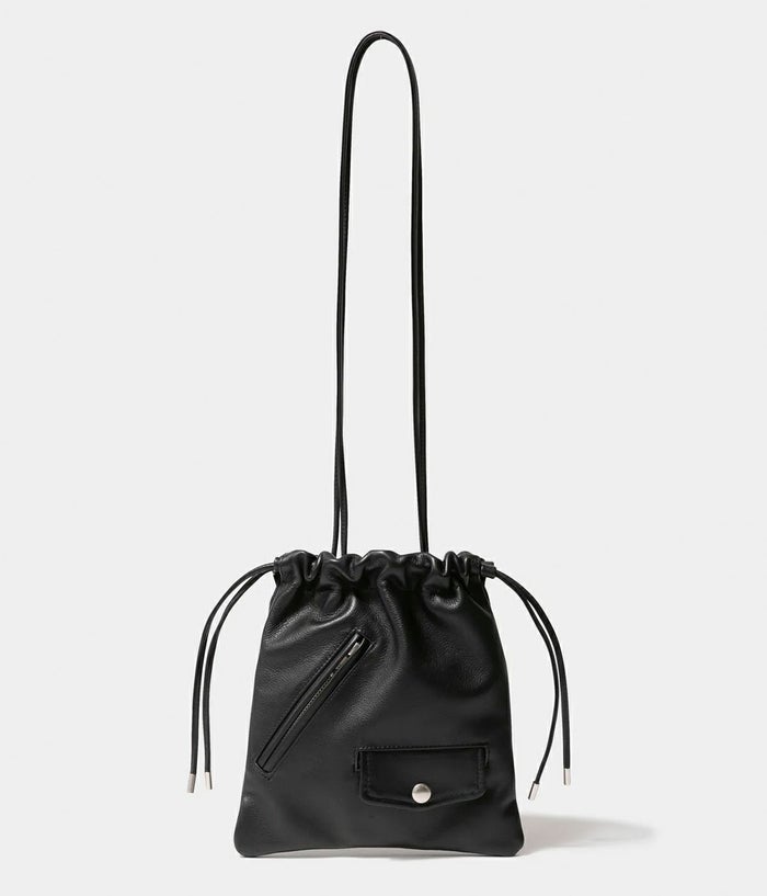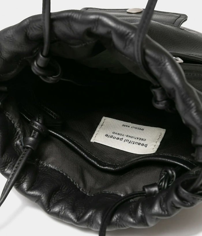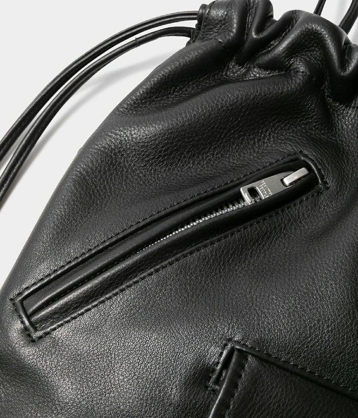 ・ライダースジャケットのディテールをexcerption(抜粋)し巾着に ・内装ポケット、背面マグネットポケット付き ・紐を好きな長さに結ぶことで簡単にアレンジが可能
