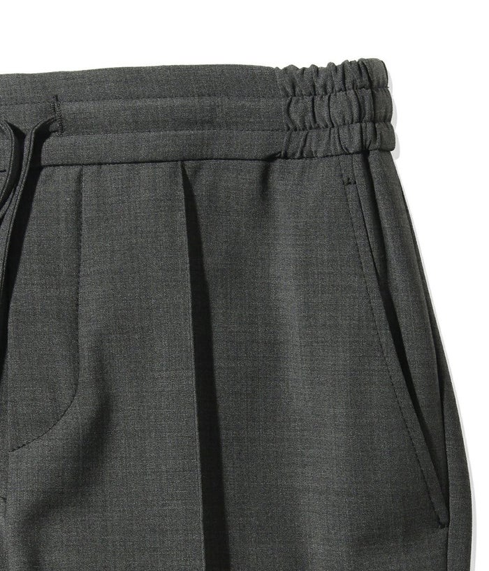 ファッションディレクター干場義雅氏の希望により、1から形を起こしたモデル名"H DUE(アッカデュエ)"から、ディテールはそのままに新素材が登場。 生地の重さは250gと軽すぎず、重すぎない絶妙なバランス。長い期間着用いただきやすく、とにかくさらっとしたドライタッチな肌触りは、高温多湿な日本の気候にぴったりなファブリックです。 ディテールの拘りは、イージー仕様にも関わらず、後ろ前に永久クリースを入れることで、きちっとした印象を損なわれずに穿いていただけます。 ウエイトは、ドローコード付きシャーリング仕様、フロントフライではなく、ノンファスナー仕様。 裾は敢えてダブルで仕上げていることにより、スポーティな印象に。 シルエットは、ワタリには程よくゆとりがありますが、裾にかけてはしっかりとテーパードを効かせた、絶妙な塩梅でパターンメイクされたシルエットが特徴。 BERWICHのインラインコレクションにはない、究極の大人なイージーパンツが完成。是非、ご堪能下さい。