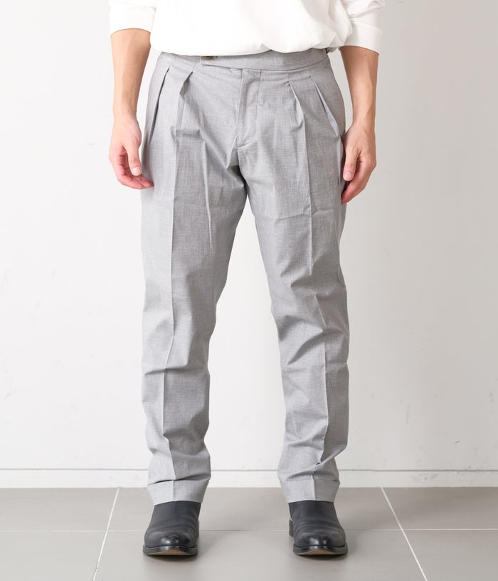 BERWICHを代表する定番モデル「SCOTCH(スコッチ)」は、2プリーツを備え、サイドアジャスター付き・ベルトループなしというクラシックなディテールを踏襲しながらも、現代的なフィット感を併せ持つ一本。