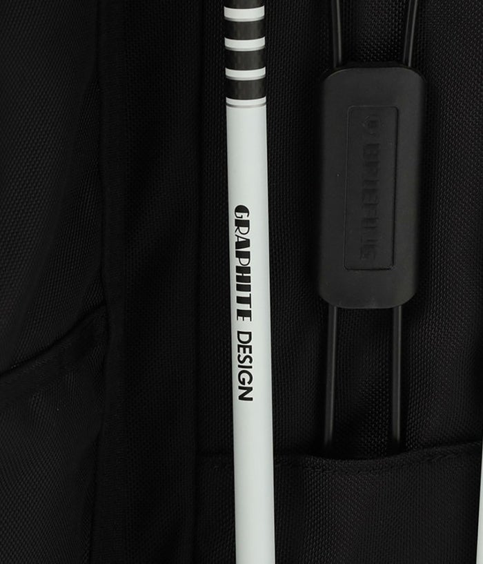 カーボン素材のスタンドはグラファイトデザイン社に別注、シャフトをイメージしたカラーリングに仕上げてました。