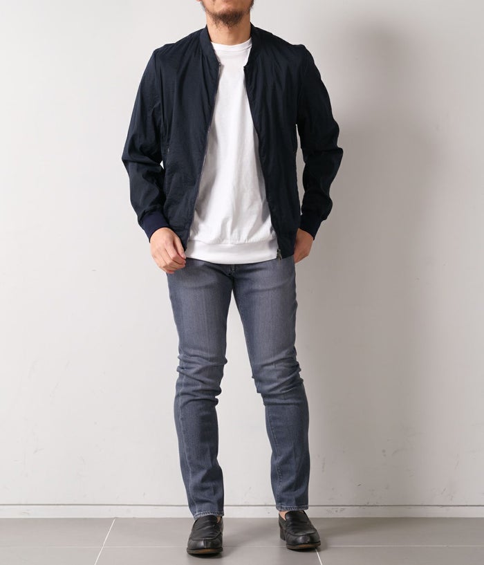 程よく施したウォッシュ加工が、デニム生地に自然な表情を与え、爽やかで洗練された印象に。スリムシルエットが脚のラインをきれいに見せつつ、ジャケットスタイルにも違和感なく馴染みます。