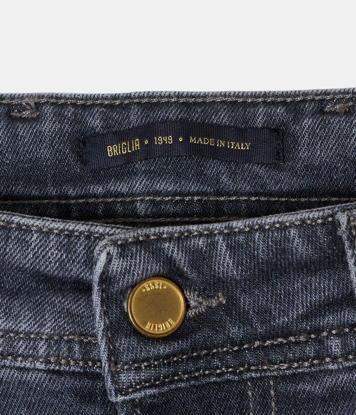 ディテールには、BRIGLIA刻印のボタン&リベットや、牛革のパッチ(ラベル)をあしらい、さりげないクラス感をプラス。Tシャツやニットを合わせたカジュアルな装いはもちろん、シャツやジャケットとのコーディネートにも好相性で、幅広いシーンで活躍する一本です。