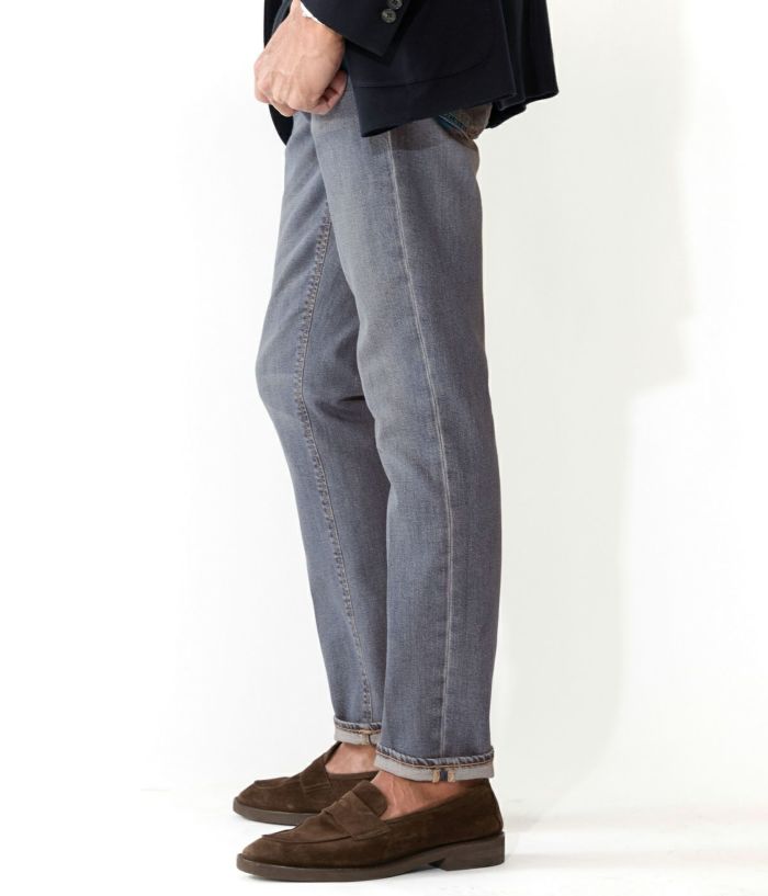 伸縮性を備えたデニムならではの快適な穿き心地と、すっきりとしたシルエットを両立した、大人のカジュアルスタイルに映える一本です。