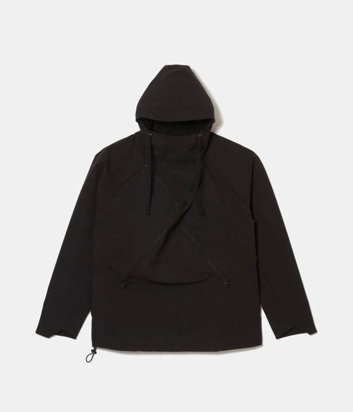 フロントの大胆なZIPポケットはインサイドポケットにもアクセス出来、又ZIPを開けた時の美しいシルエットもデザインされている。