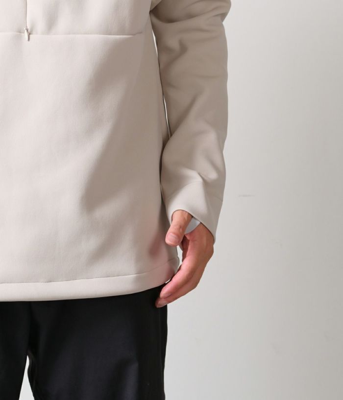 ストレッチ性が高く非常に着用しやすい1着。1枚での着用も良いですがアウターのインナーにも非常にバランスの良い1着。しかもこれで撥水性に優れている素材というのも驚きました。