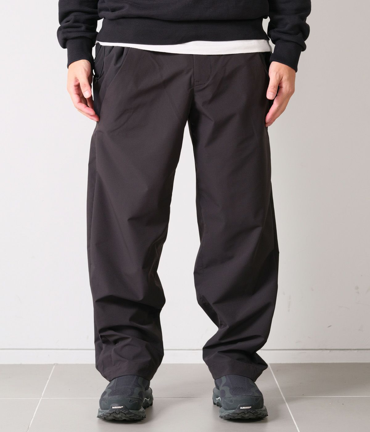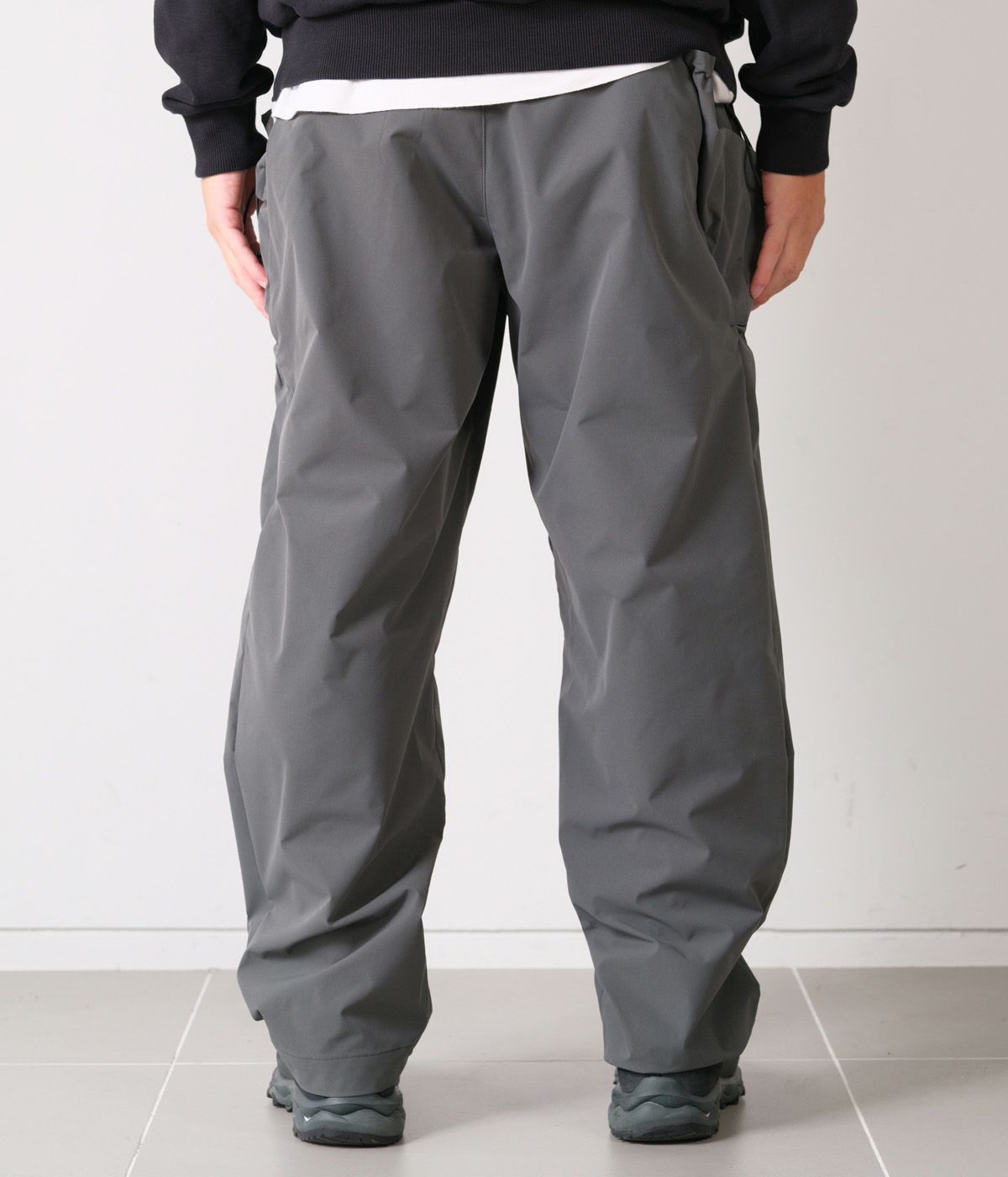 まず履いた時の楽さ。足を通して頂いた皆様には納得していただけることかと思います。スポーティな雰囲気がありながらモードな雰囲気も漂わせる1着。MOU TRECON TAILORやGOLDWINのウェアとも非常に相性が良いです。