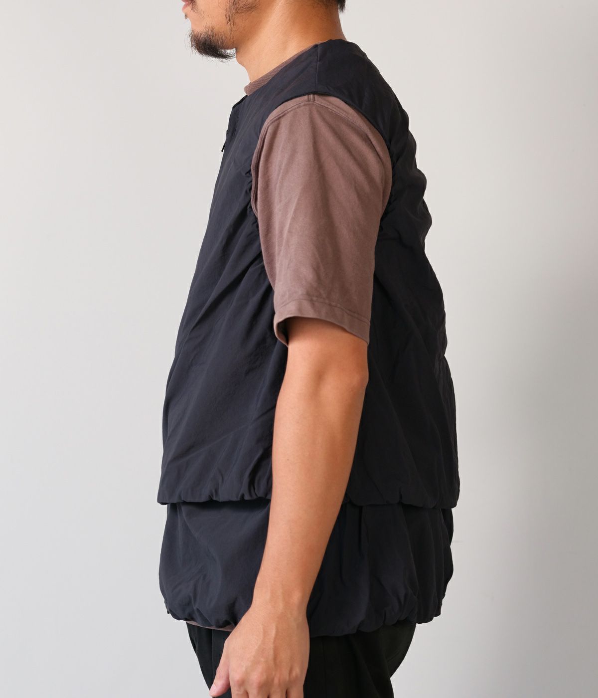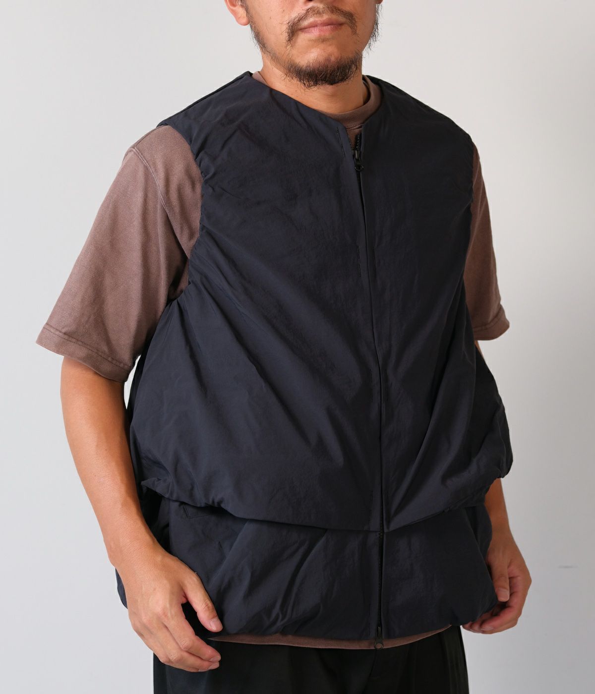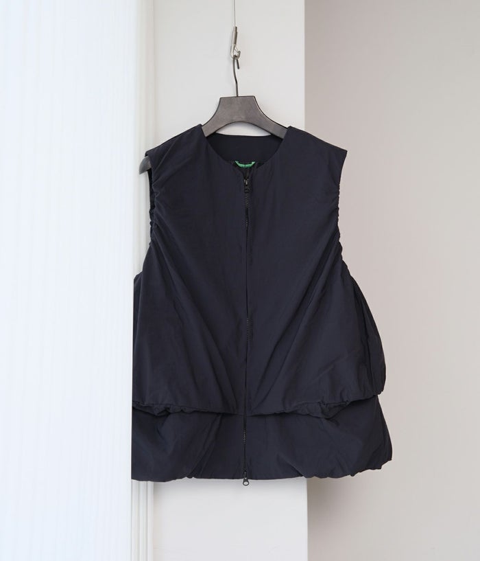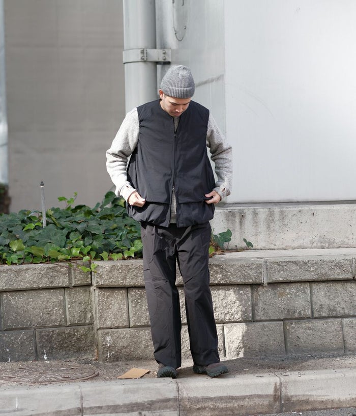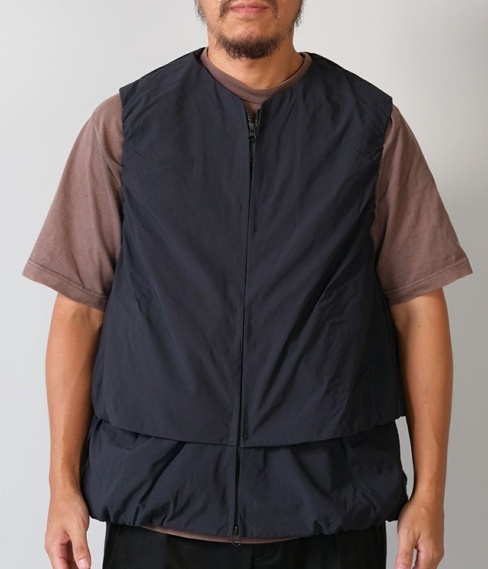 機能性の高さだけでなくファッション性も視覚的にも楽しませてくれるCCPのベスト。レイヤードしているかのような動きのあるデザインはシンプルなスタイリングにも溶け込みやすい1着です。