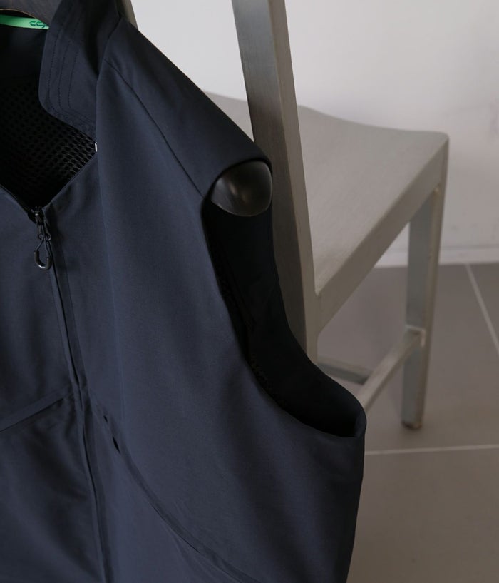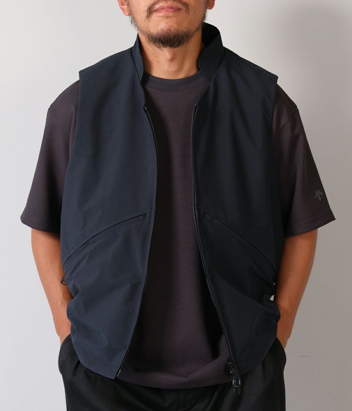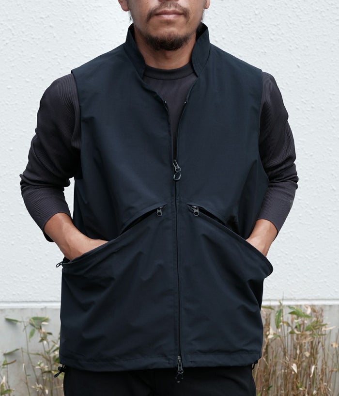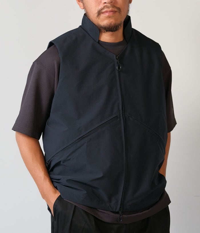 機能性の高さだけでなくファッション性も視覚的にも楽しませてくれるCCPのベスト。レイヤードしているかのような動きのあるデザインはシンプルなスタイリングにも溶け込みやすい1着です。