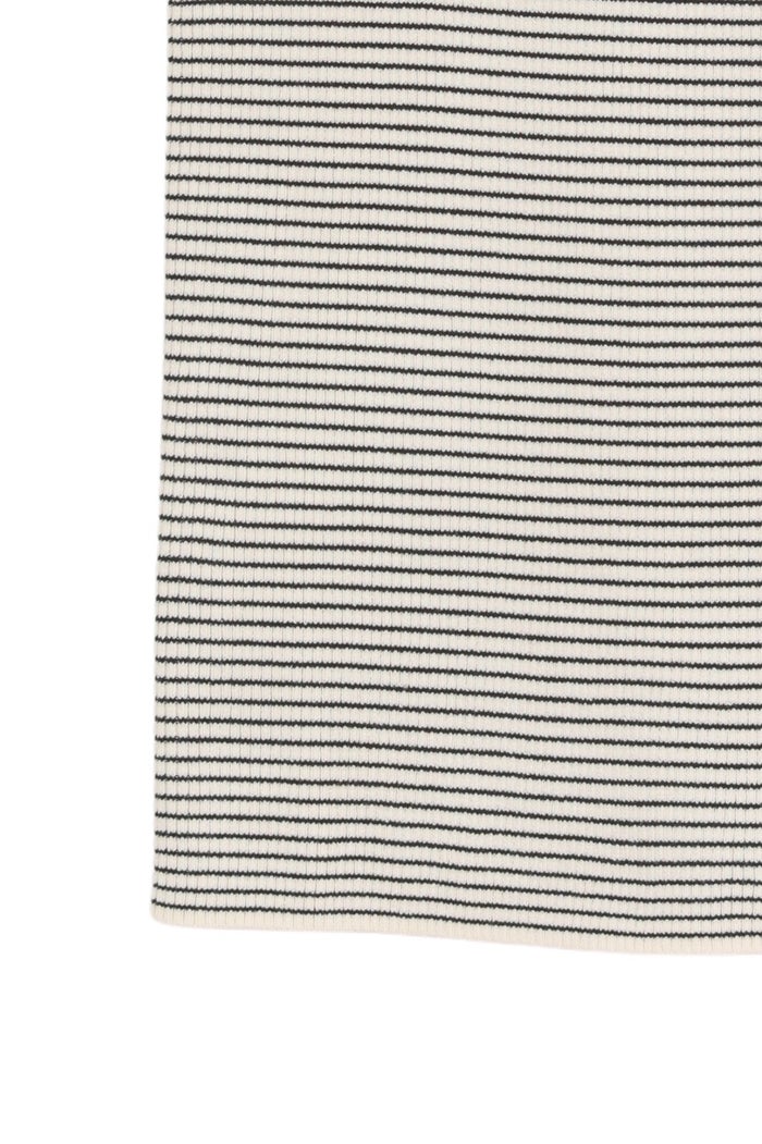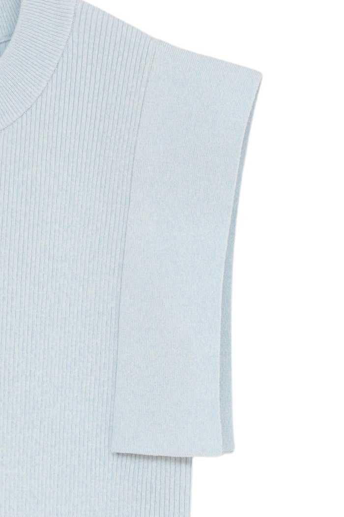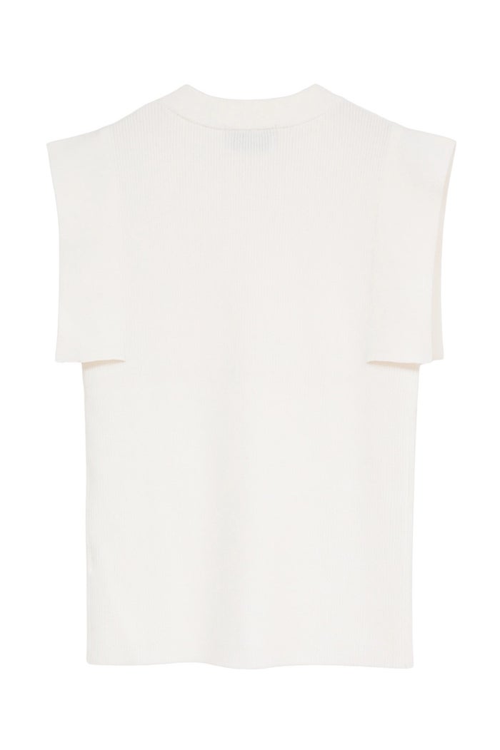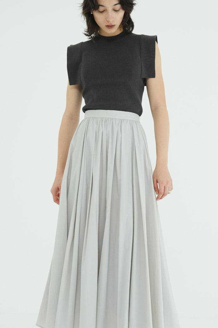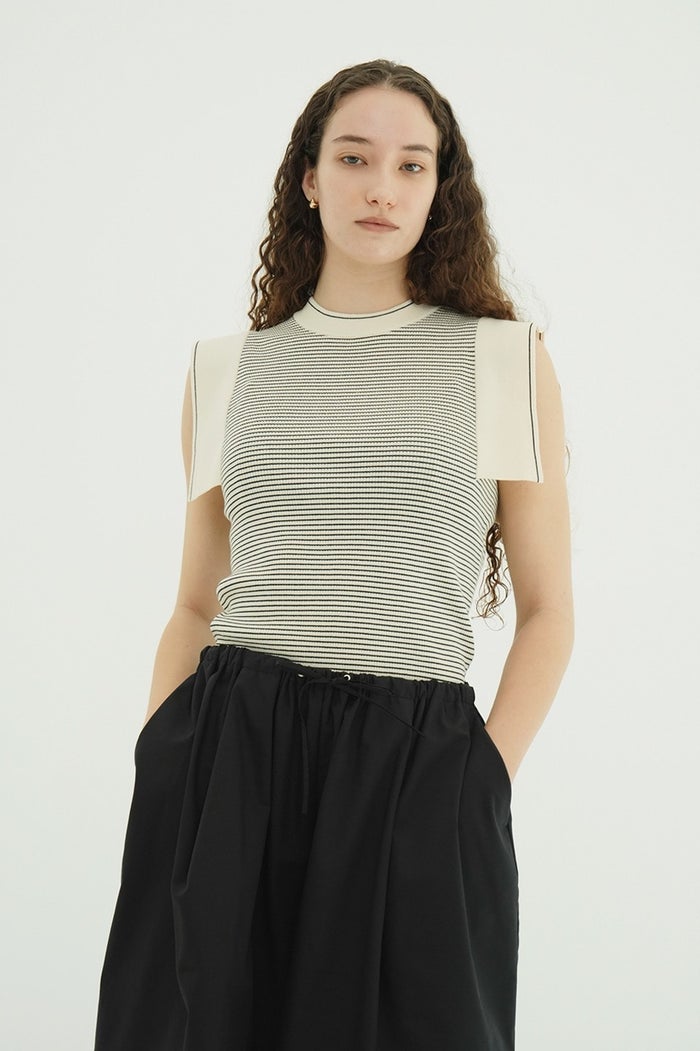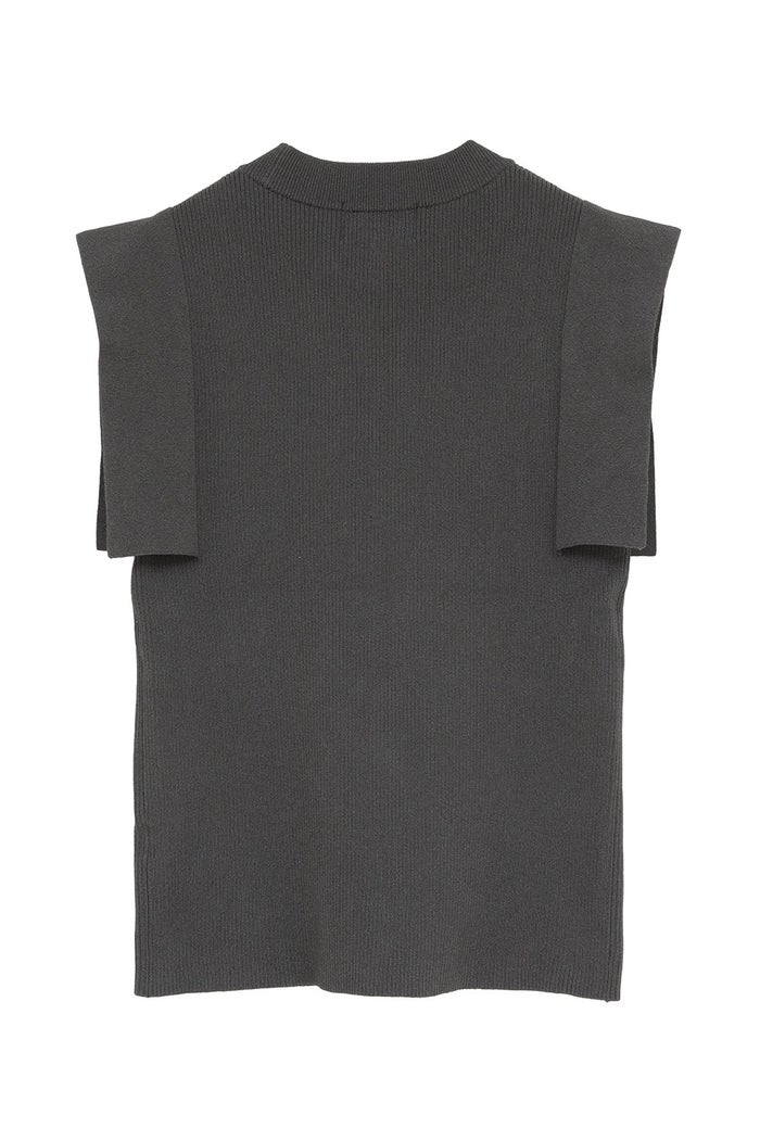 程よくシャリ感のある糸で目を詰めて編み立てたリブは、型崩れしにくく長く愛用いただけます。特徴的なスクエア型の袖は、シンプルながらもデザイン性が高く、二の腕をさりげなくカバー。