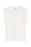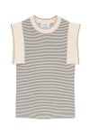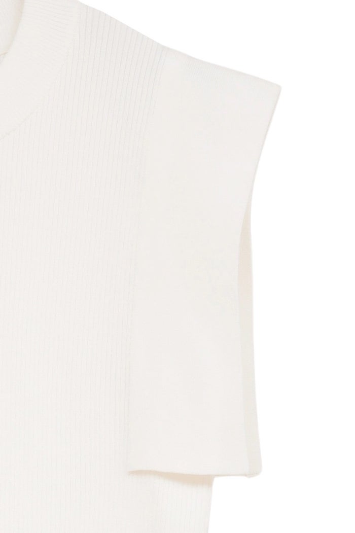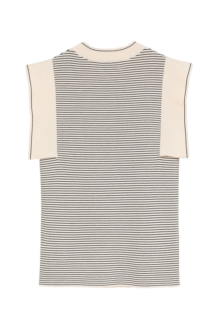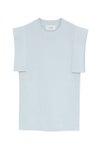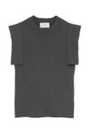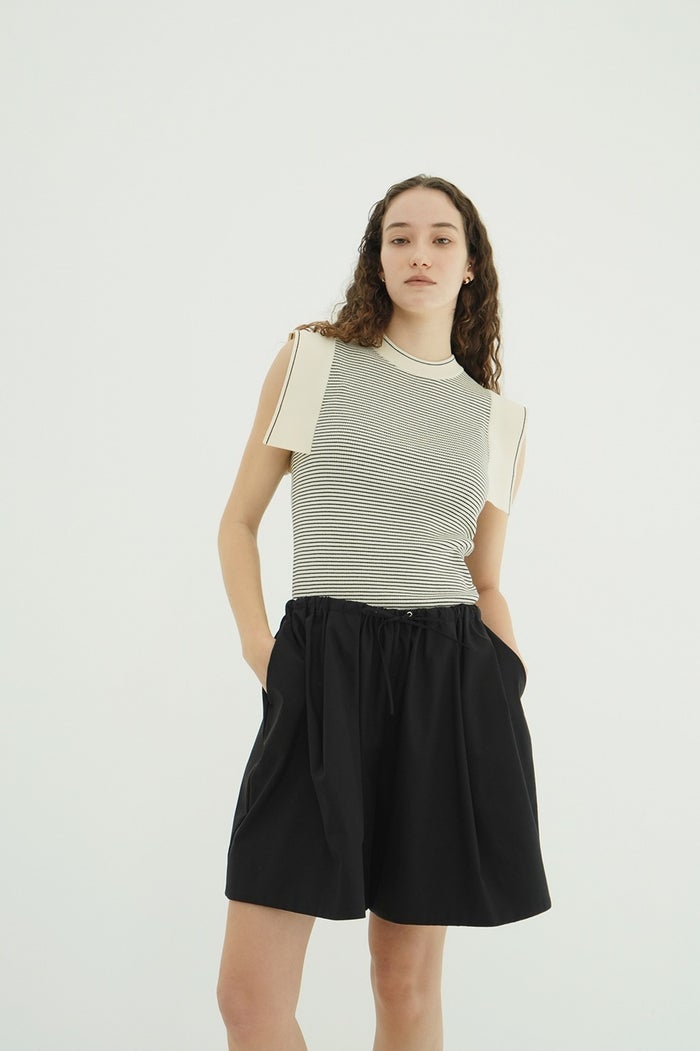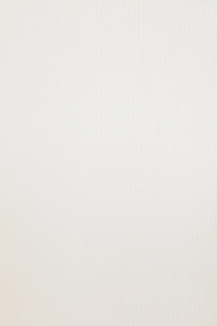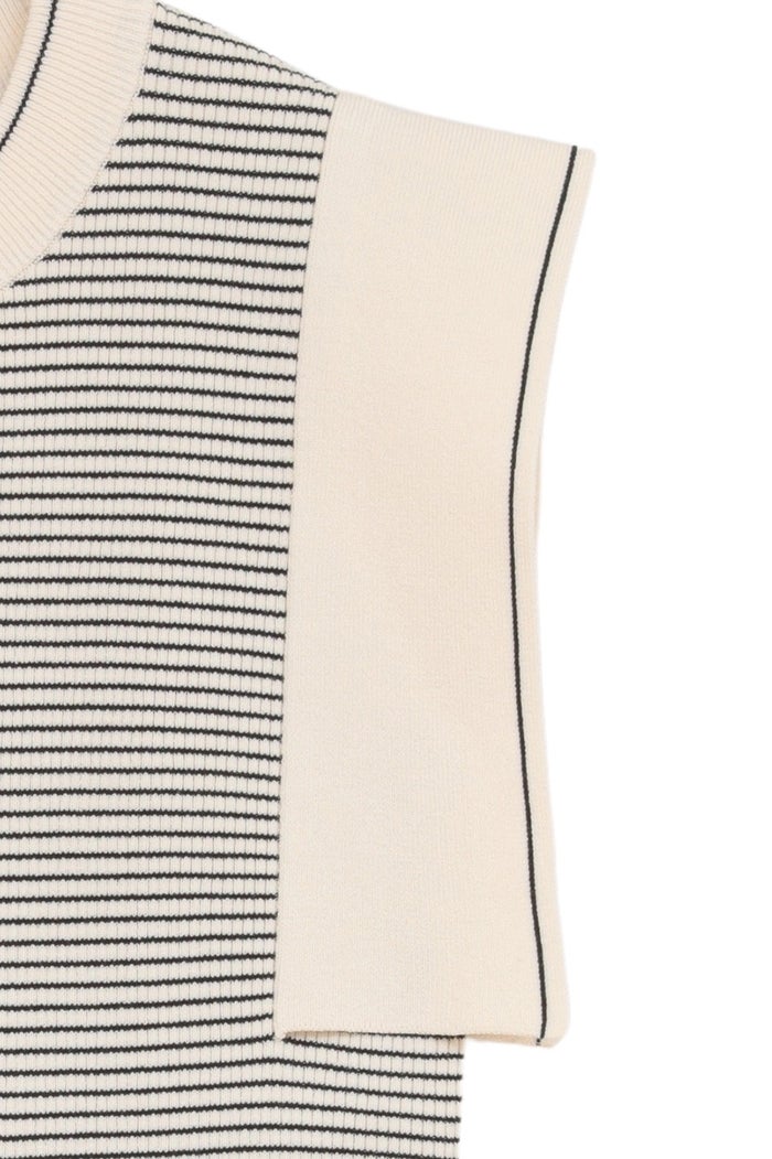 程よくシャリ感のある糸で目を詰めて編み立てたリブは、型崩れしにくく長く愛用いただけます。特徴的なスクエア型の袖は、シンプルながらもデザイン性が高く、二の腕をさりげなくカバー。