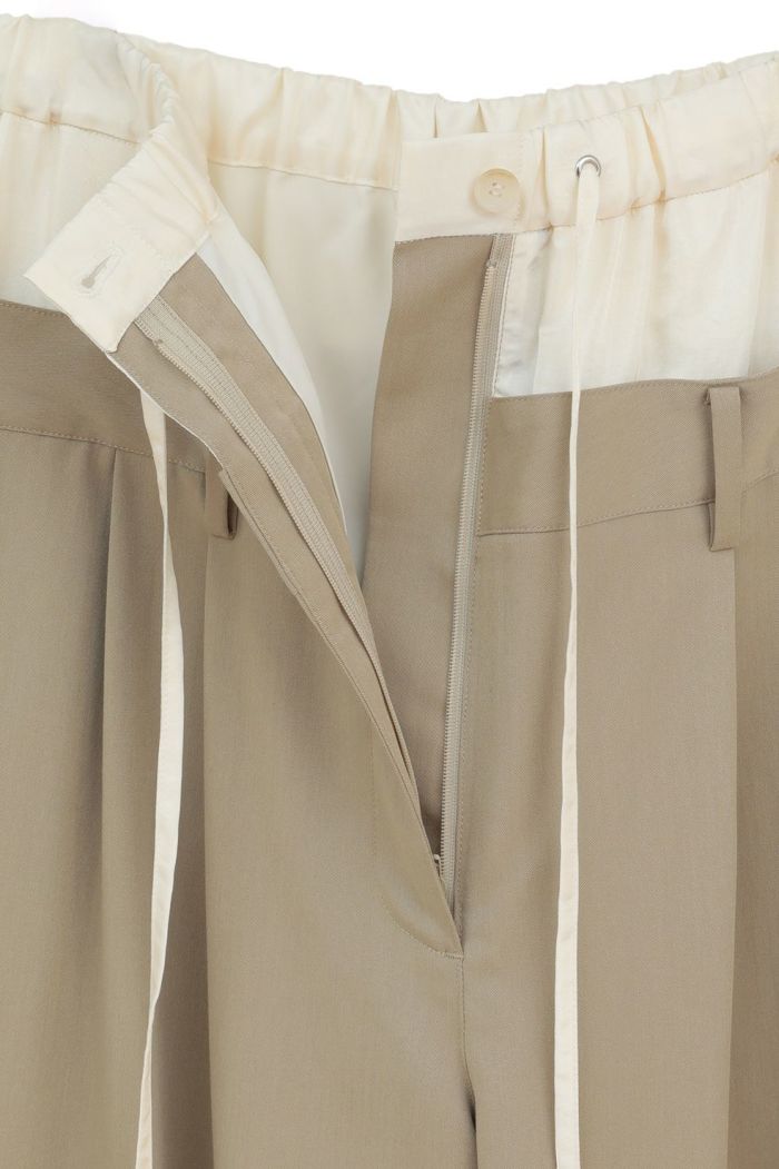 ウエストはゴムとドローストリング仕様で、好みの履き位置に調整可能です。