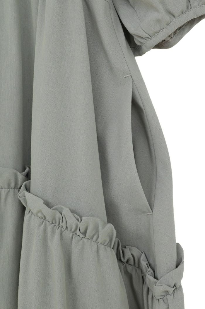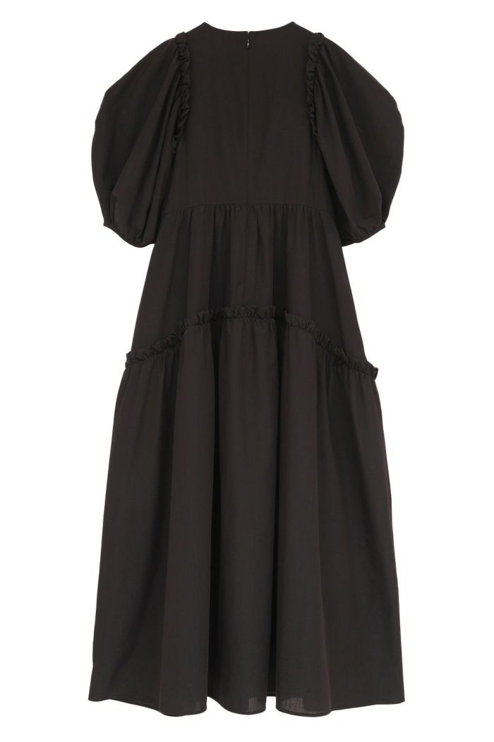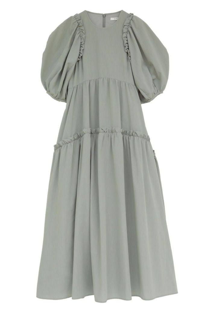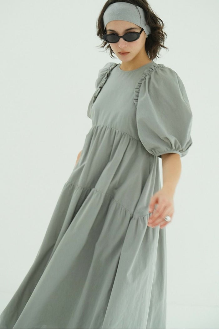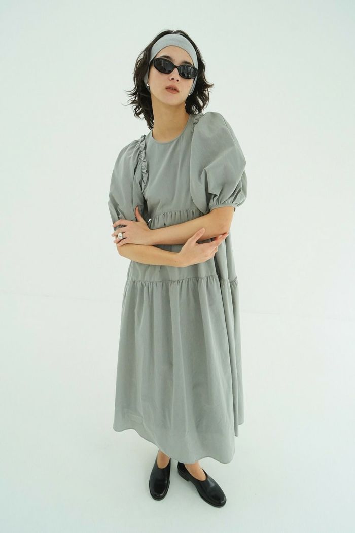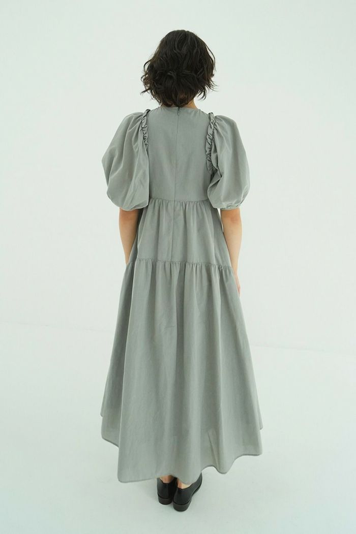 ドライで軽く、程よく膨らみのある素材で仕立て、さらりとした着心地に仕上げました。たっぷりとしたボリュームスリーブとティアードフレアが、存在感のあるシルエットを演出します。