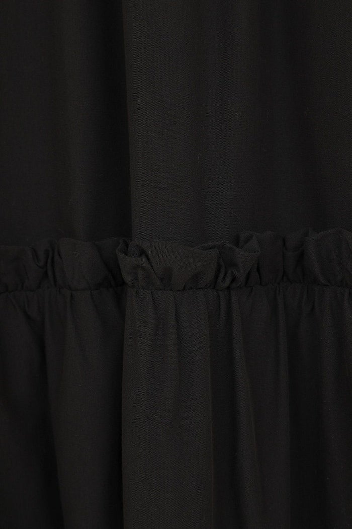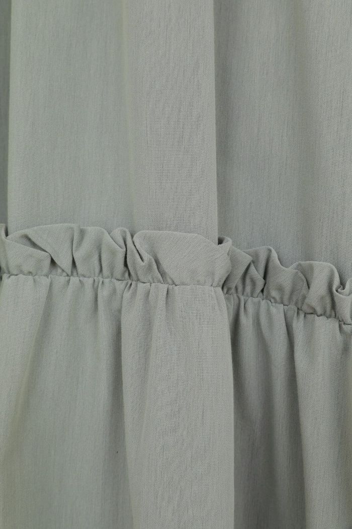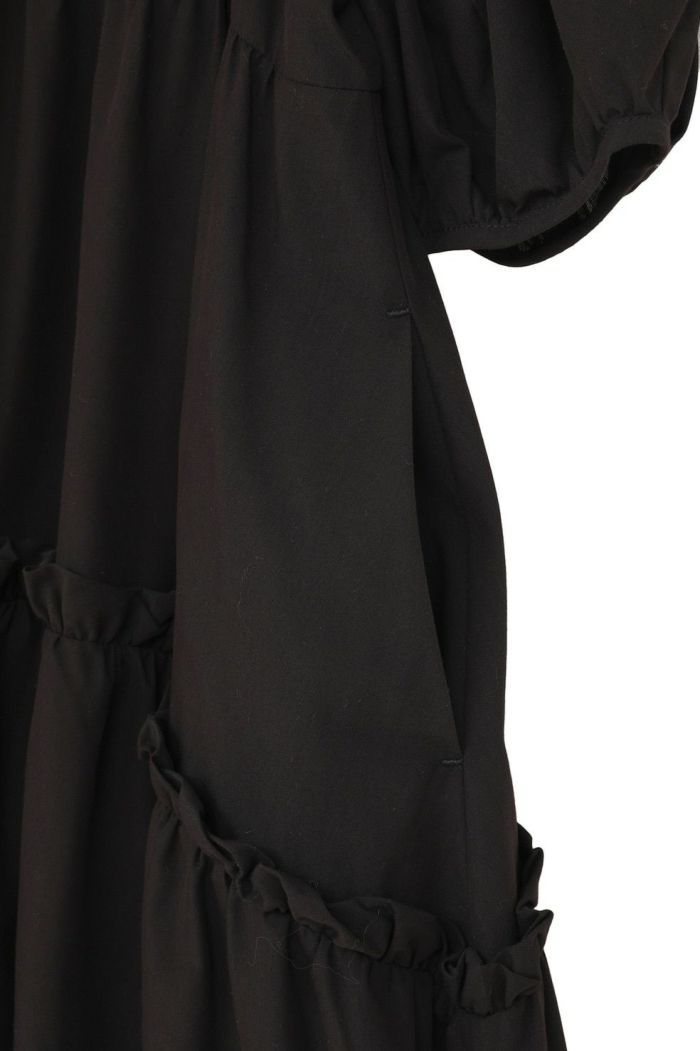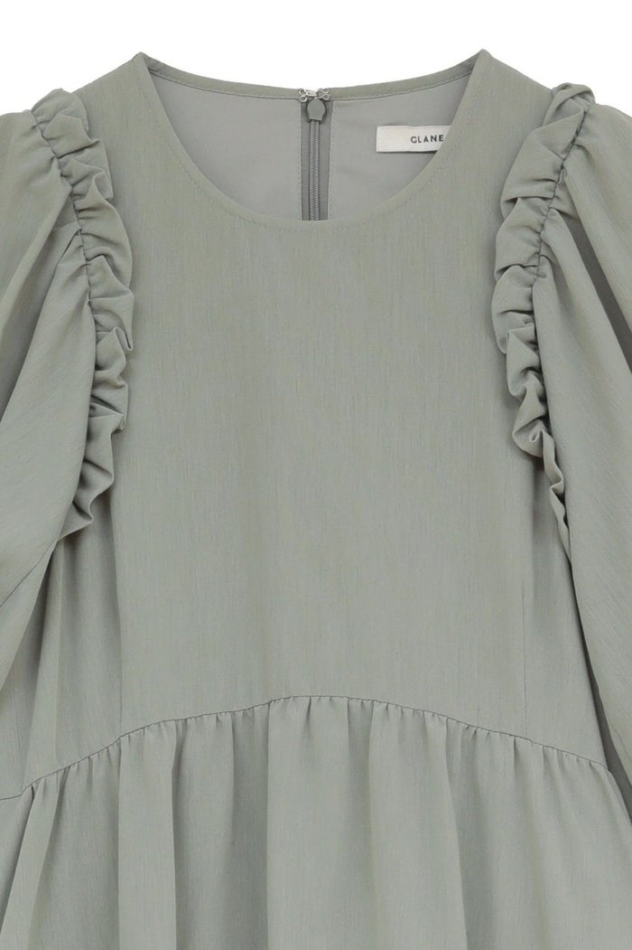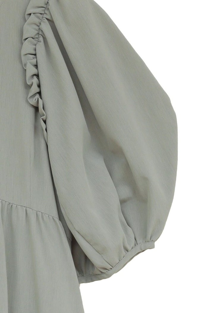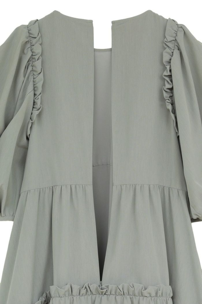ドライで軽く、程よく膨らみのある素材で仕立て、さらりとした着心地に仕上げました。たっぷりとしたボリュームスリーブとティアードフレアが、存在感のあるシルエットを演出します。
